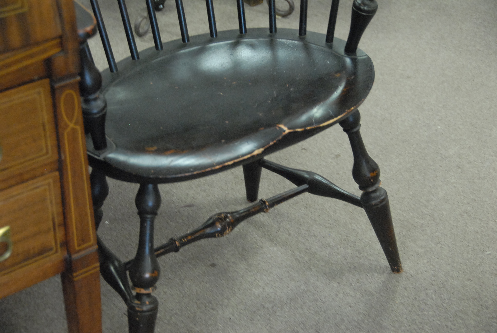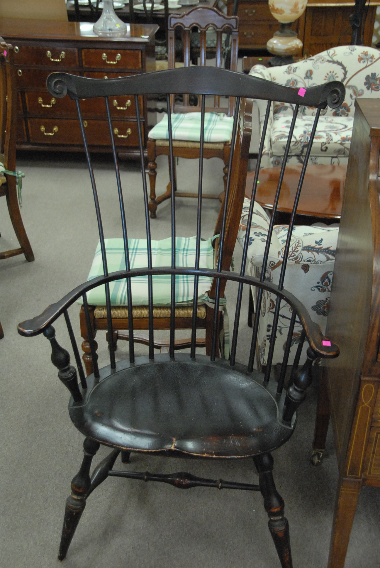 D.R. Dimes pair of Windsor fan back armchairs signed on bottom.