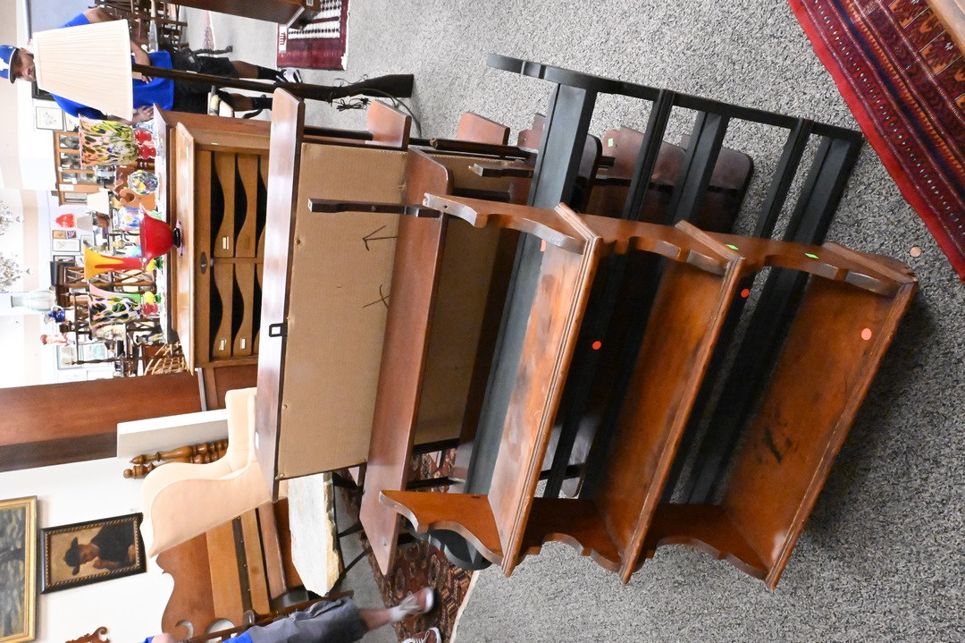 Four Hanging Shelves, to include a pair along with two odd pieces, tallest 38 inches, largest top 9″ x 37″. Provenance: Estate of Peter Tillou, Litchfield, Connecticut.
