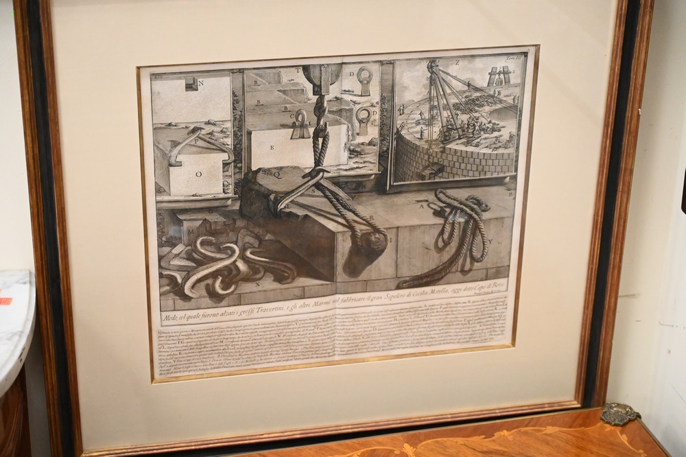 Lot 182: Group of Two Engravings After Giovanni Battista Piranesi (Italian, 1720 – 1778), “Aranzi Della Villa” and “Modo Col Quale”, both engravings on paper, both having inscriptions in plate along the lower edge, image size 17 1/2″ x 26″ and 13 1/2″ x 20″.