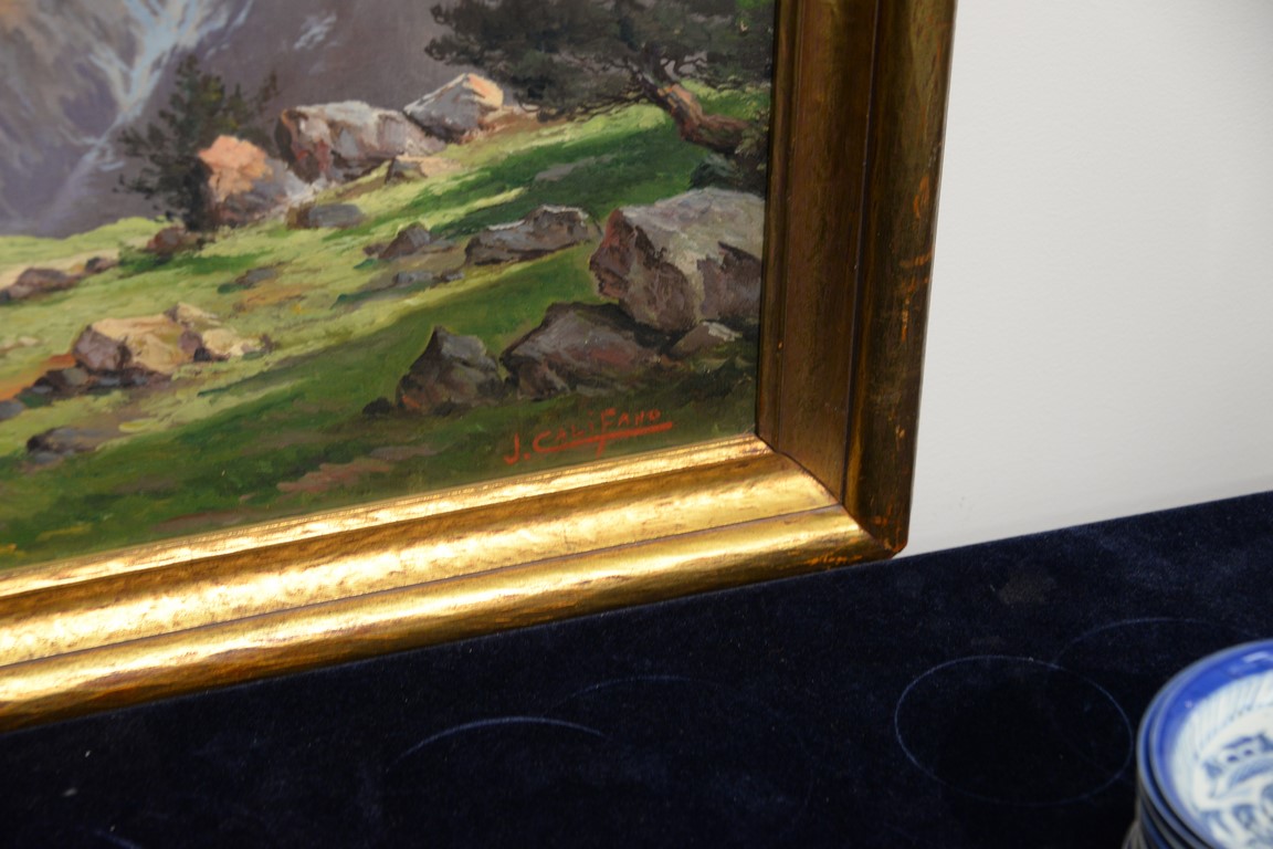 Lot 182: John Califano 1862-1946 oil on canvas Mountainous Landscape Yosemite signed lower right: J. Califano 22 x 32