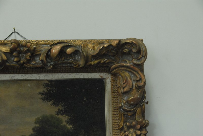 Oil on canvas of cows on farm’s edge signed lower left Rose, 12 x 18.