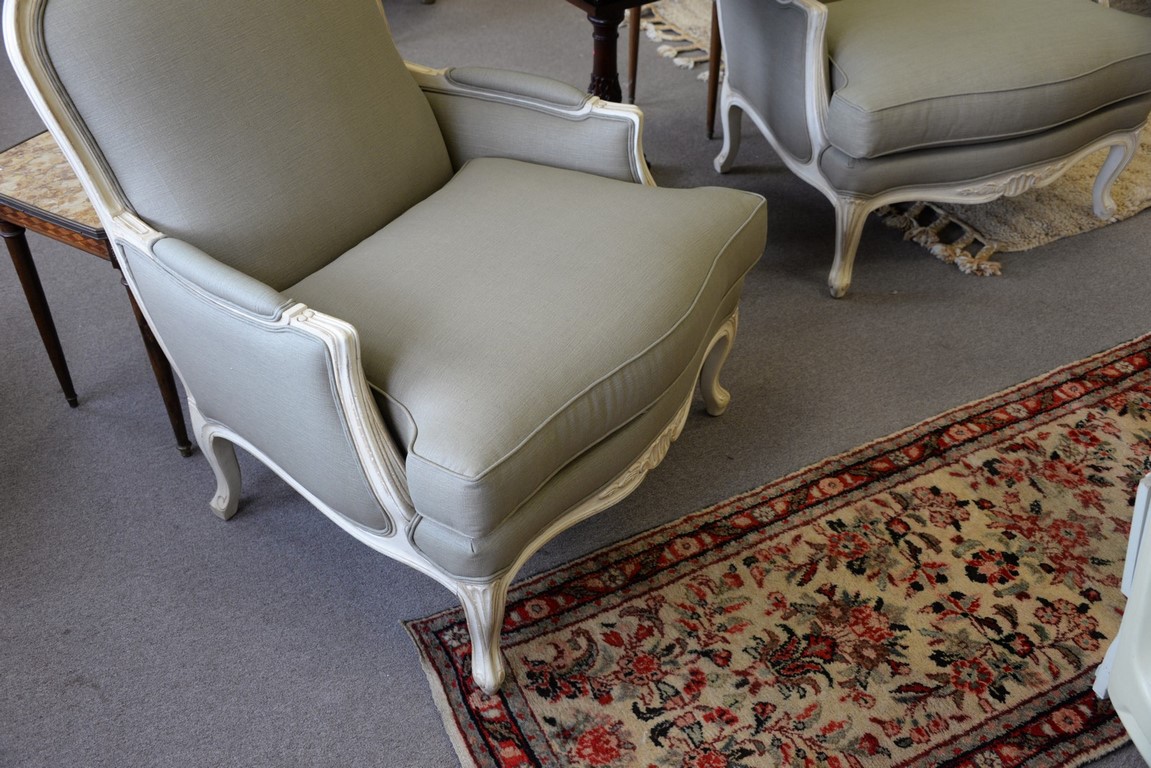 Pair of Ethan Allen upholstered Louis XV style chairs.