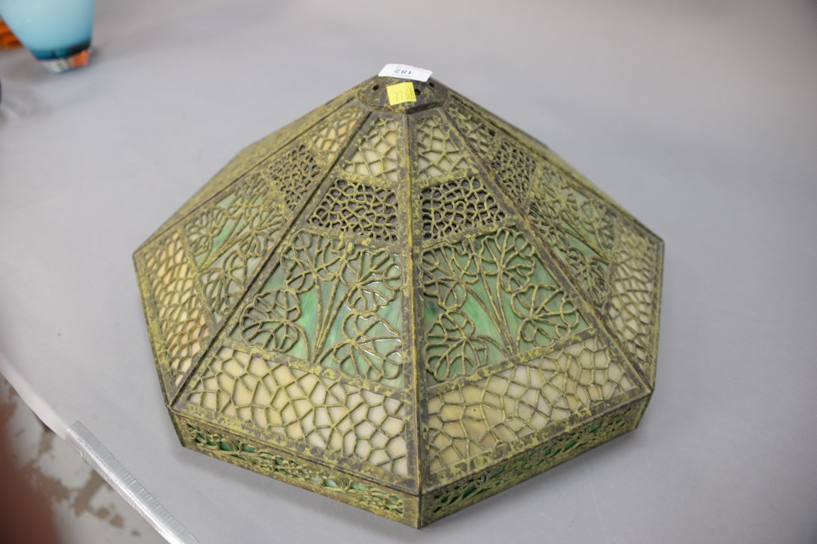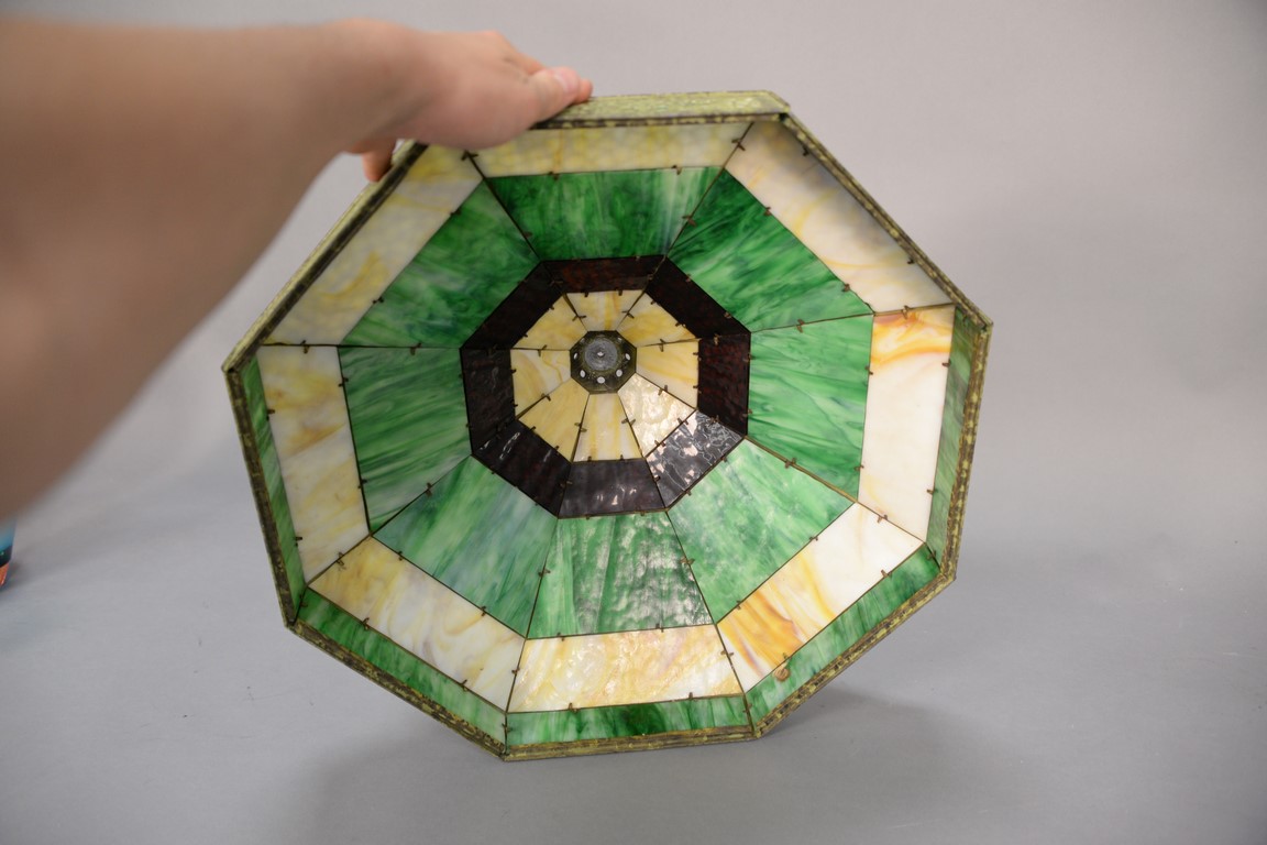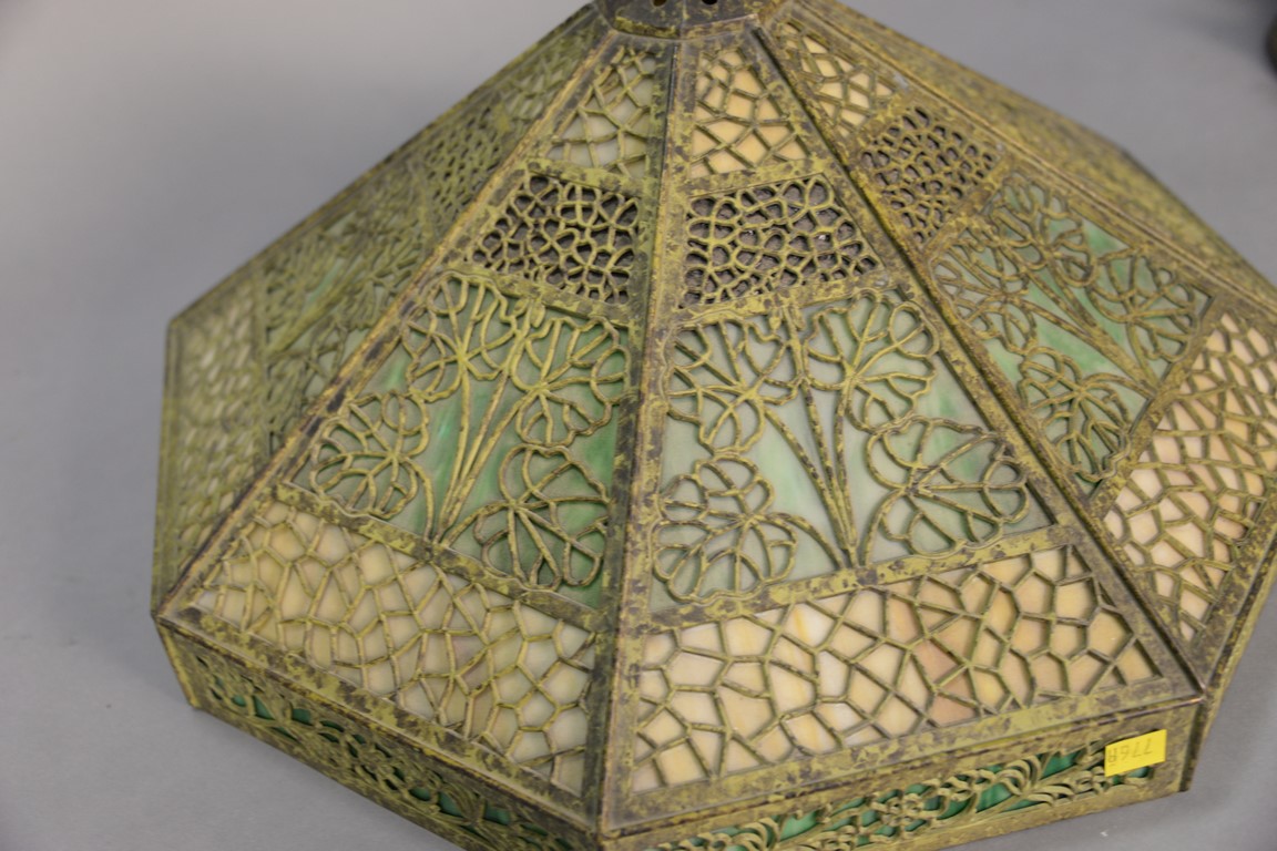 Panel shade green caramel and red panels with filigree, dia. 20 in.