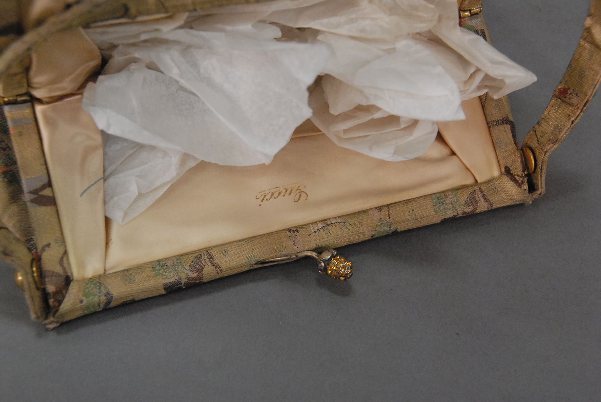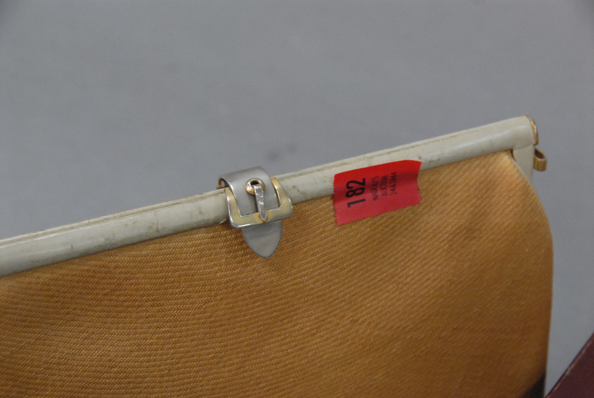 Lot 182: Three piece lot to include two vintage Gucci purses and vintage Gucci box. one purse with handle off.