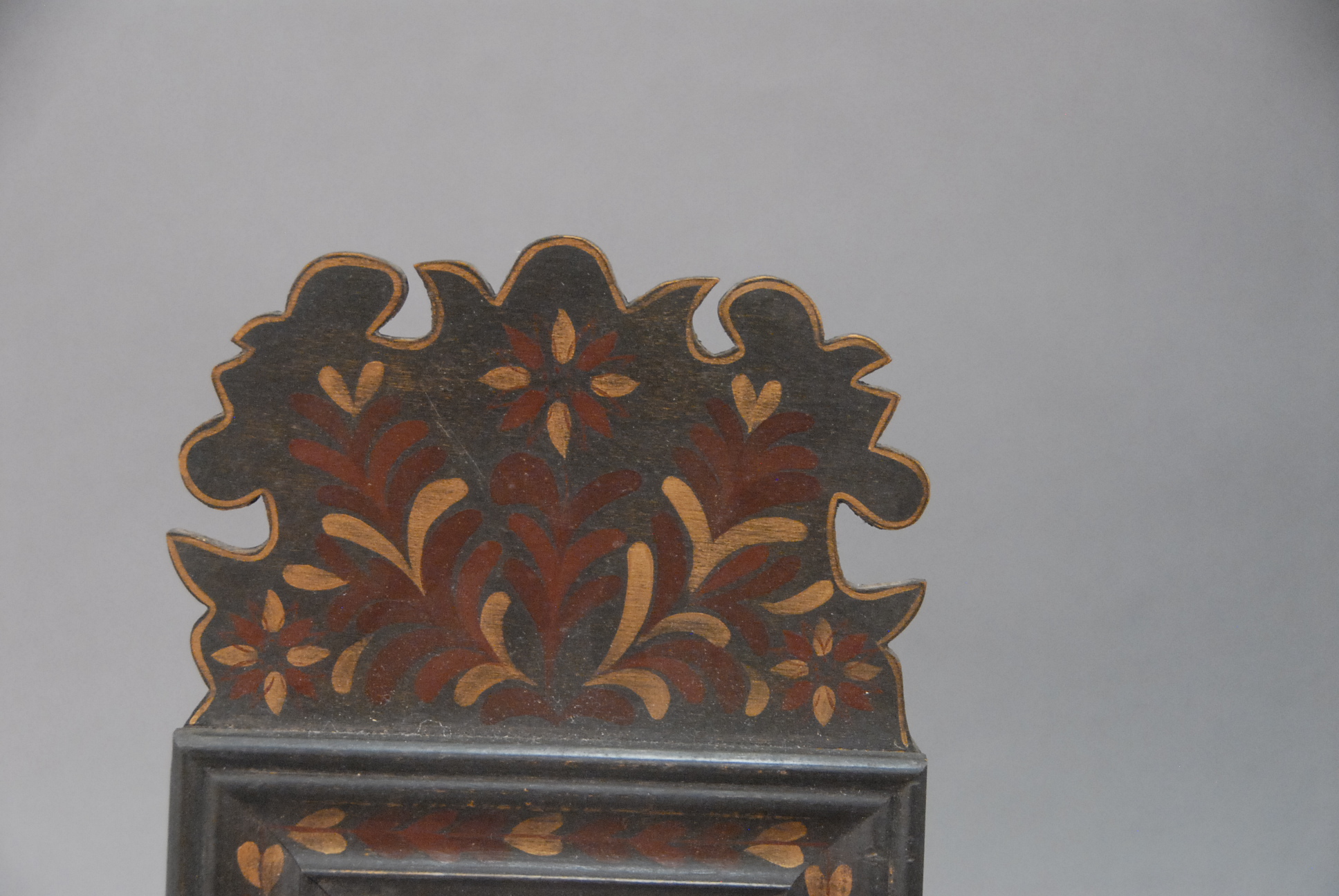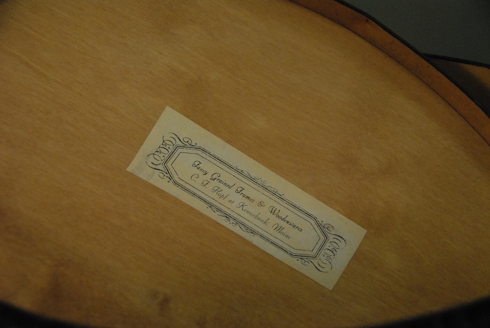 Three piece reproduction lot including Eldridge Wheeler Queen Anne style mirror and two paint decorated green oval boxes marked C. F. Hopf Kennebunk, Maine.
