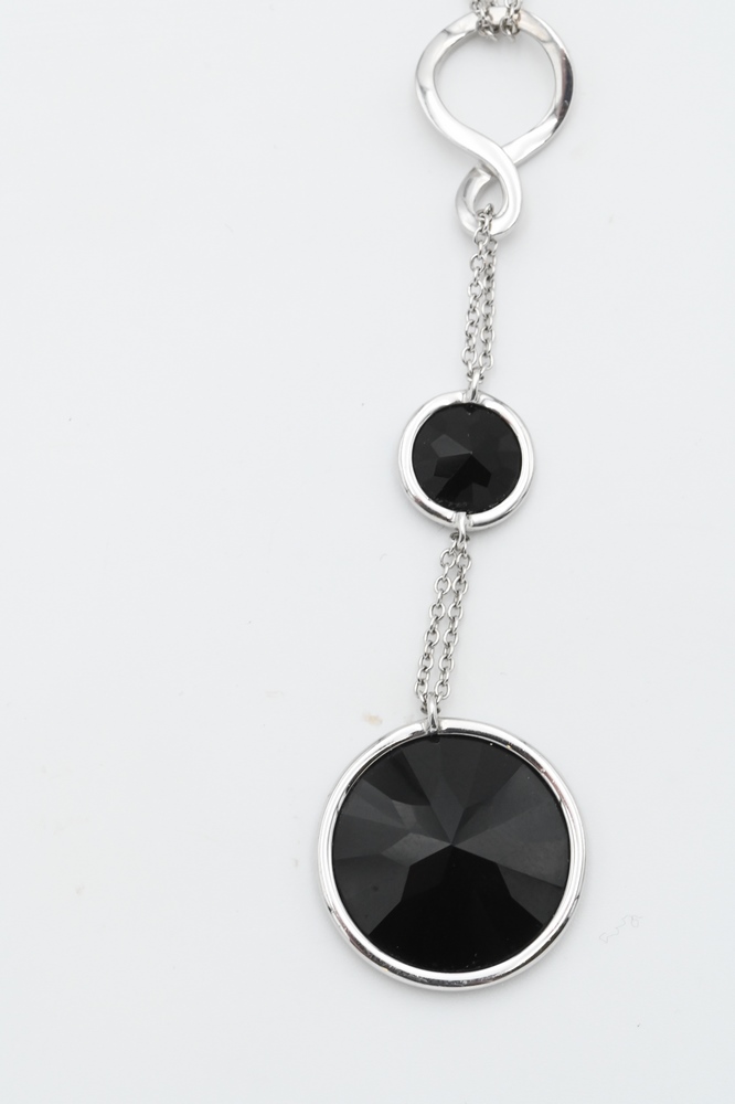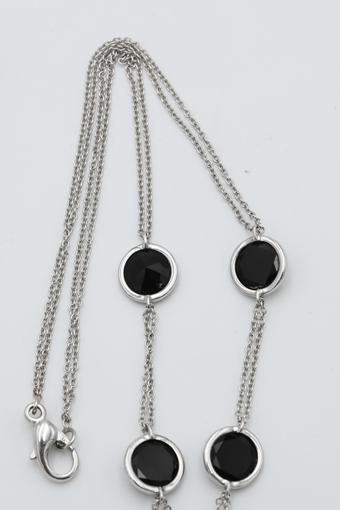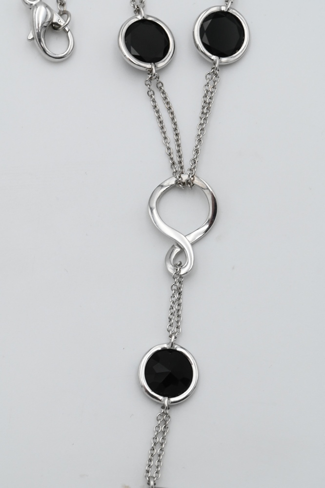 14 Karat White Gold Necklace, having small diamonds and black circles, total weight 18.2 grams.