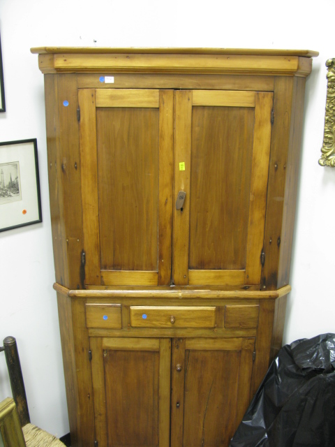 2 part primitive corner cupboard with doors & drawers
