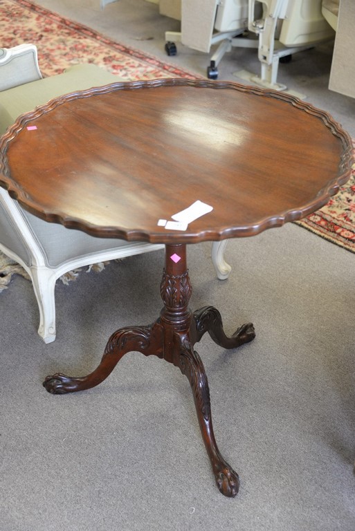 Baker mahogany birdcage tilt top table with piecrust top. ht. 29 in. dia. 30 in.