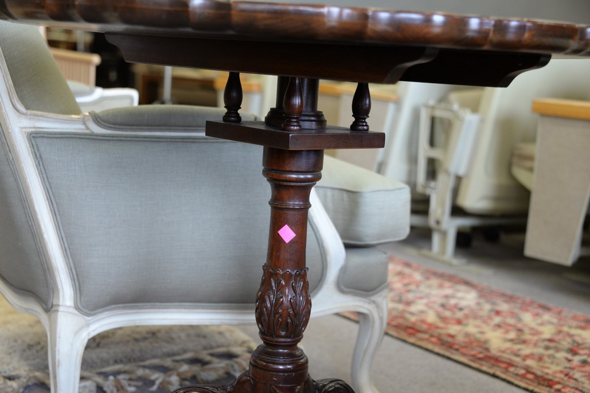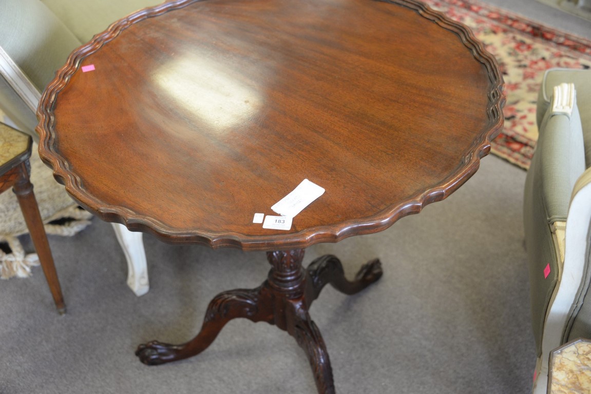 Lot 183: Baker mahogany birdcage tilt top table with piecrust top. ht. 29 in. dia. 30 in.