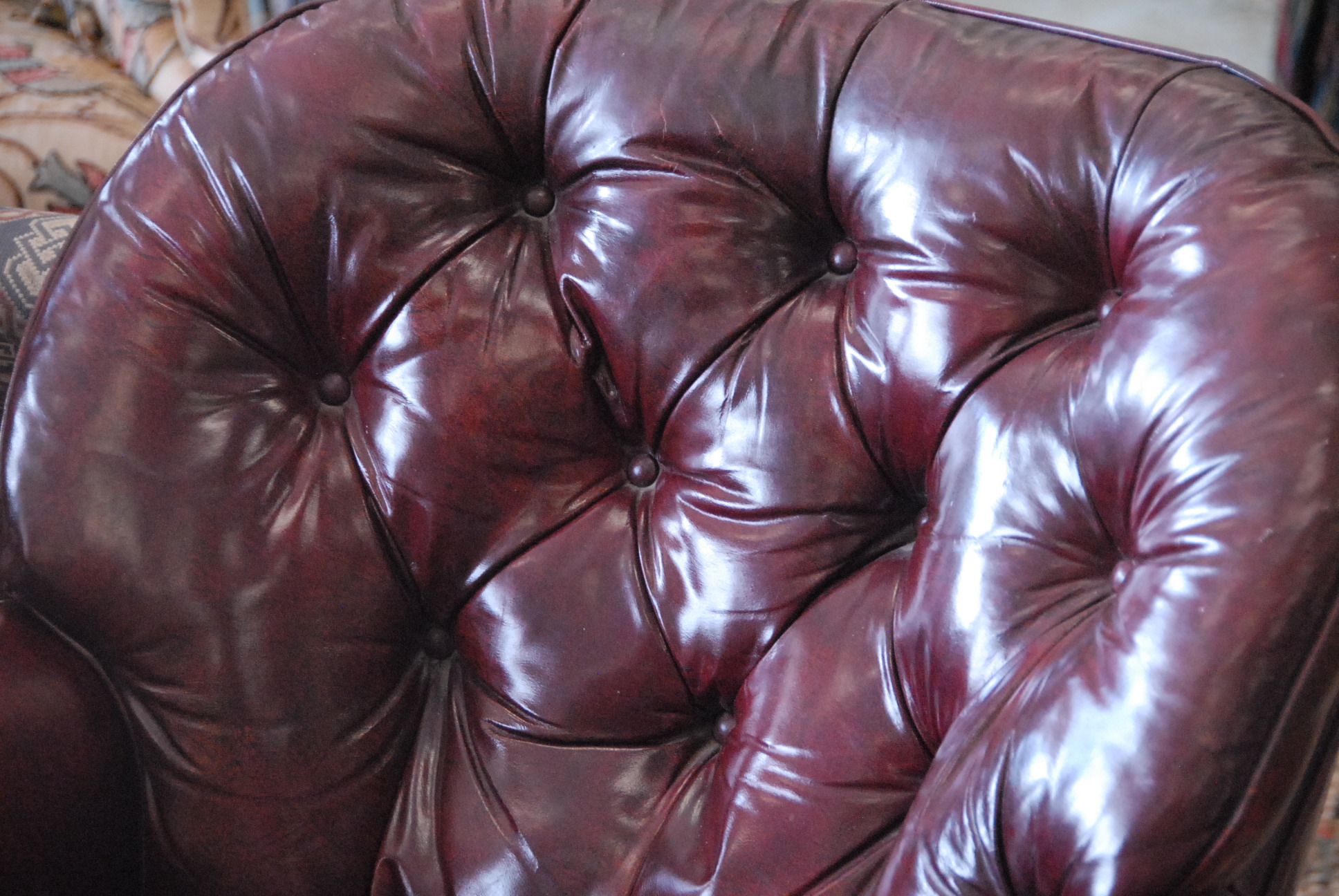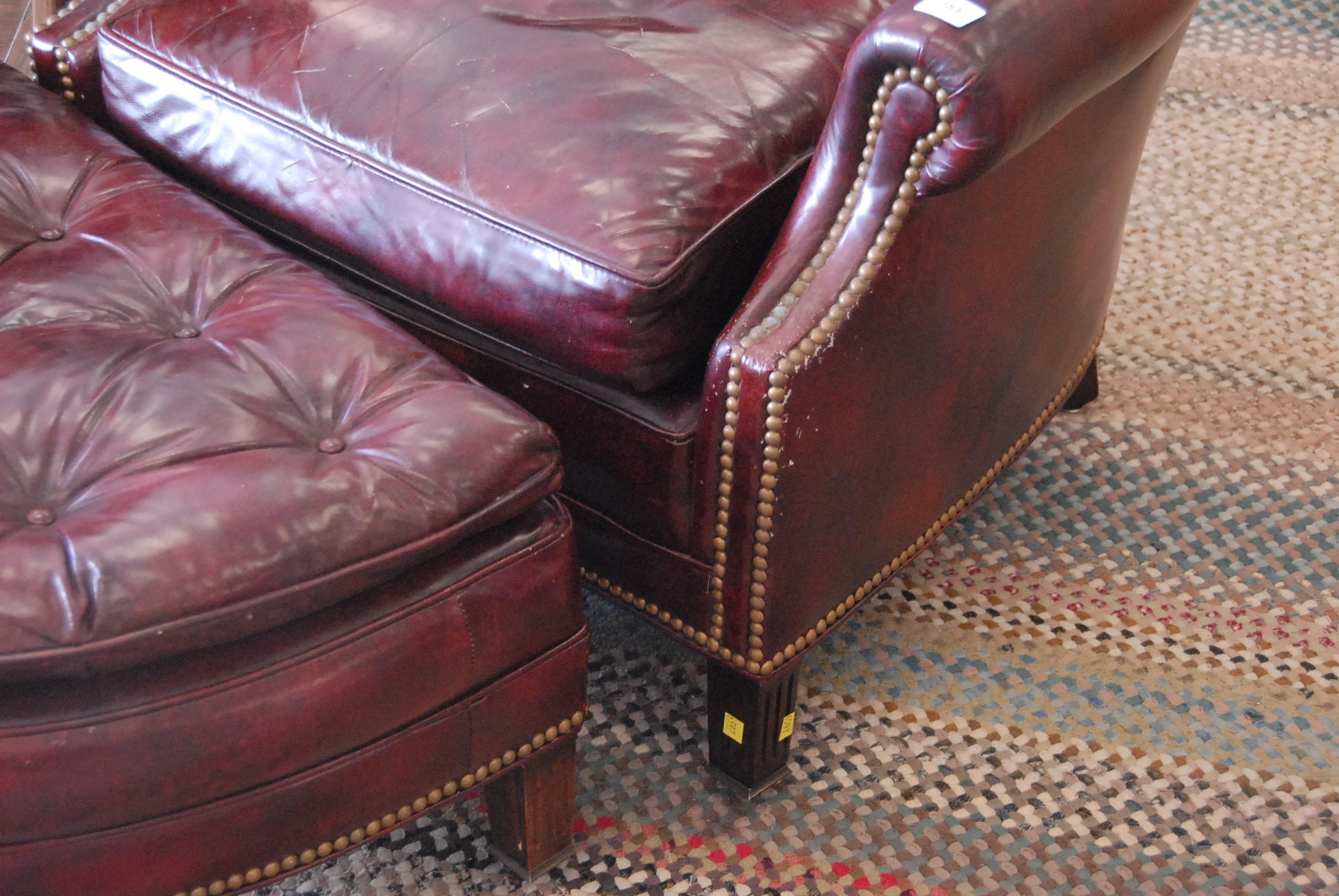 Lot 183: Burgundy leather upholstered easy chair and matching ottoman, wd. 32.