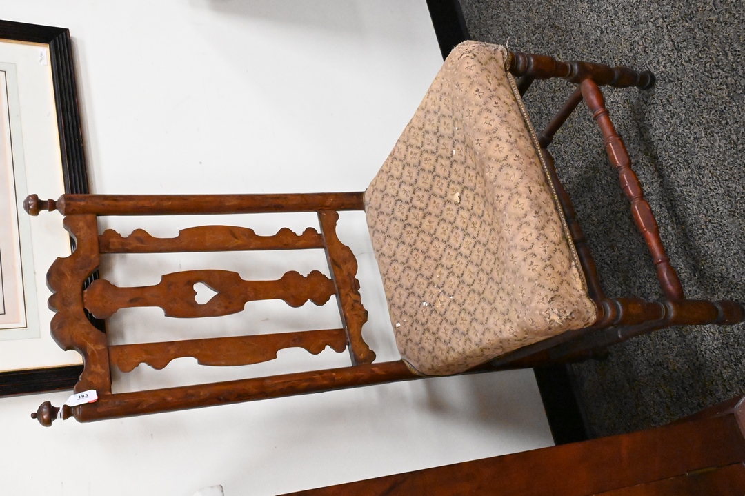 Continental Marquetry Inlaid Side Chair, having heart cutout, upholstered seat having fur/hair interior, on turned legs, 18th century, height 44 1/2 inches, seat height 19 inches. Provenance: An estate from Redding, CT.