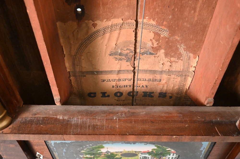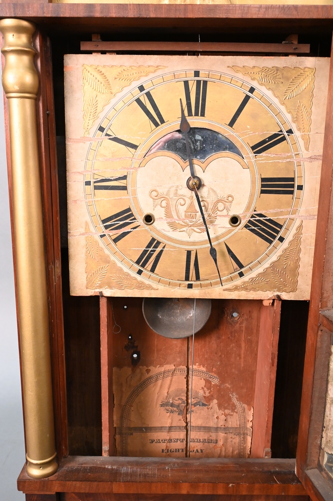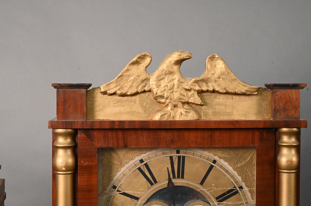 Dyer Wadsworth & Company, eight day triple shelf clock with eagle top, height 37 inches.