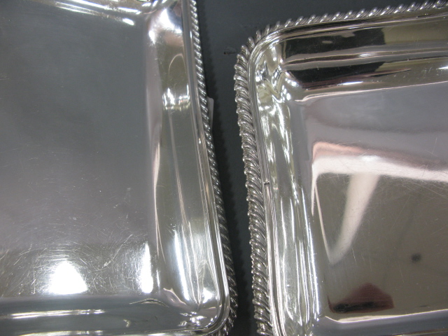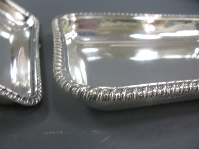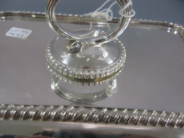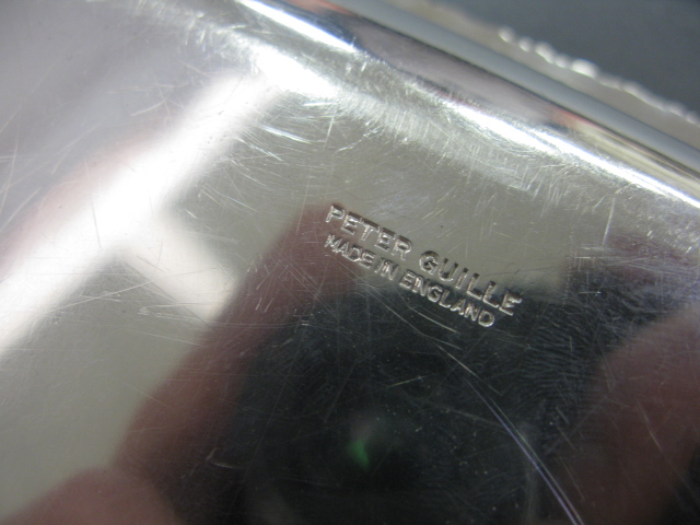 English silver covered vegetable dish rectangular form with gadrooned edge, marked Peter Guile.