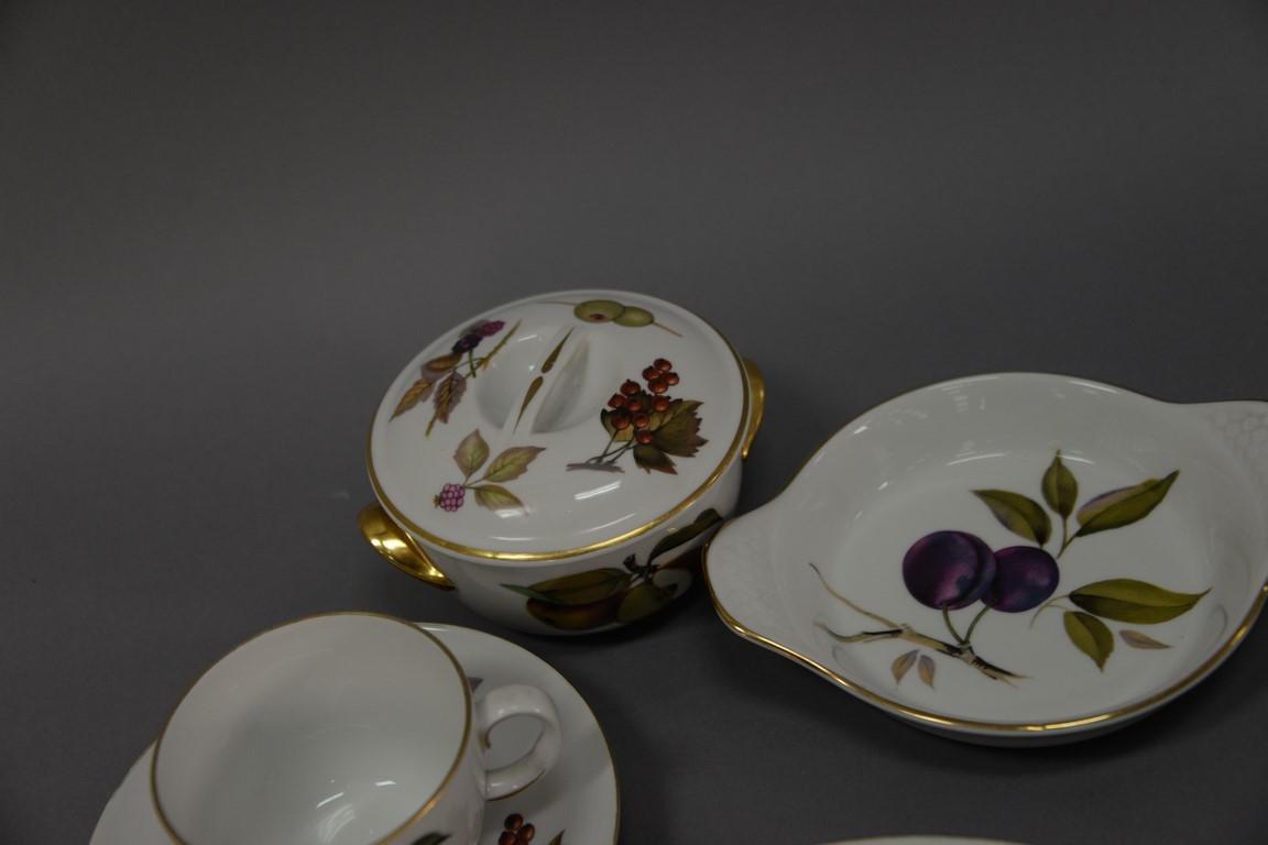 Large set of Royal Worcester Evesham dinnerware, complete setting for nine, plus 45 extra pieces, and 12 serving pieces, 138 total pieces.