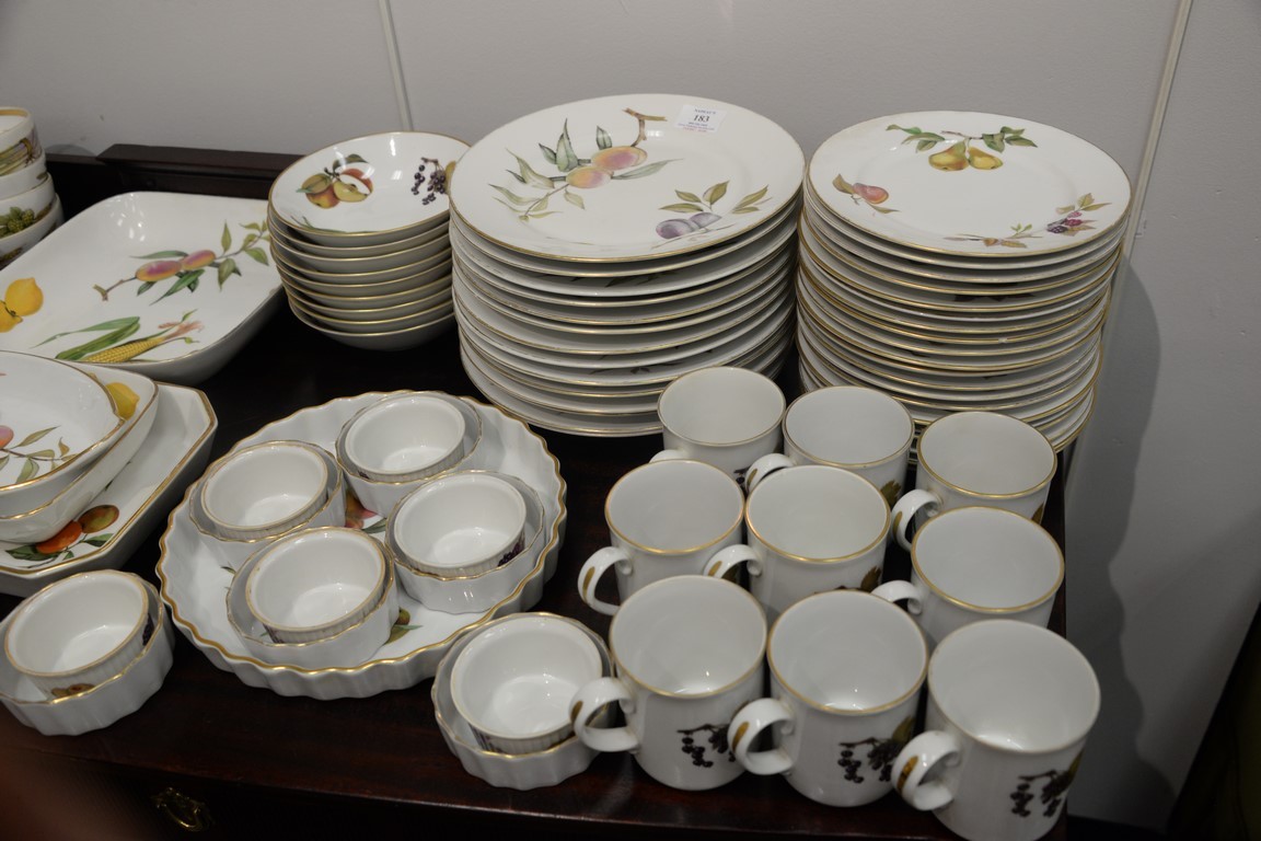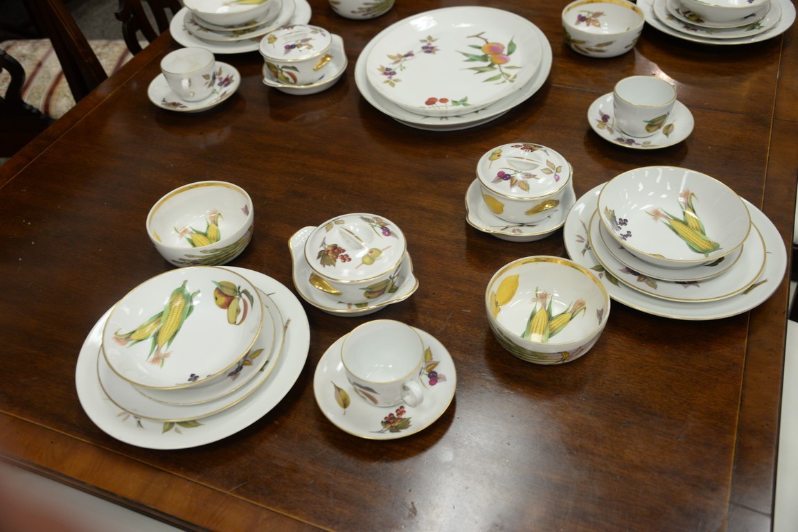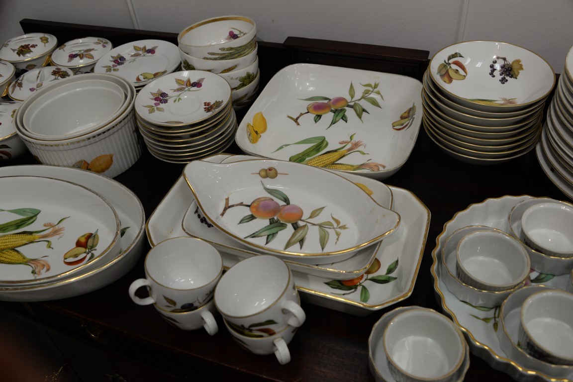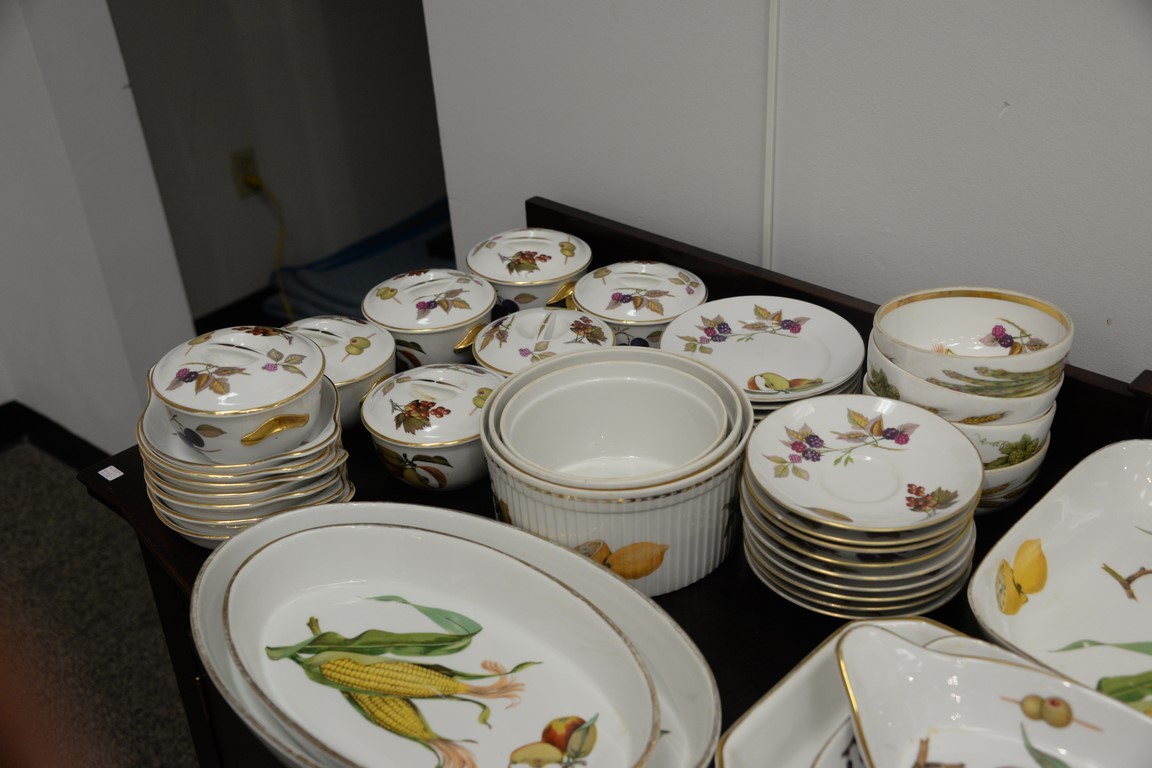 Lot 183: Large set of Royal Worcester Evesham dinnerware, complete setting for nine, plus 45 extra pieces, and 12 serving pieces, 138 total p…