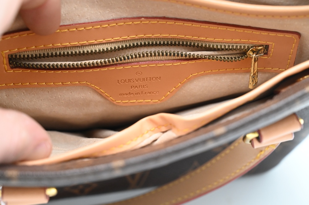 Louis Vuitton Handbag/Purse, marked Louis Vuitton, Paris, Made in France, height 8 1/4 inches, width 10 1/4 inches.
