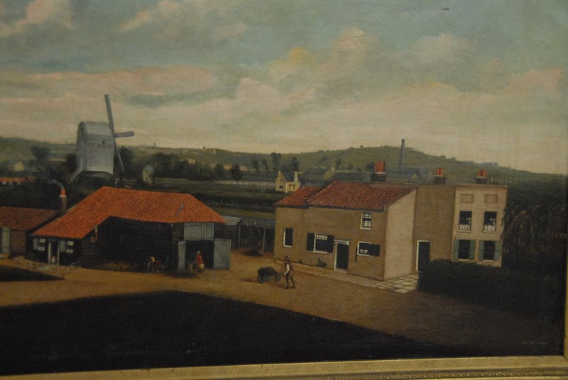 Lot 183: Oil on canvas late 19th century Windmill Farmscape, unsigned, restretched and relined, 14 x 25.