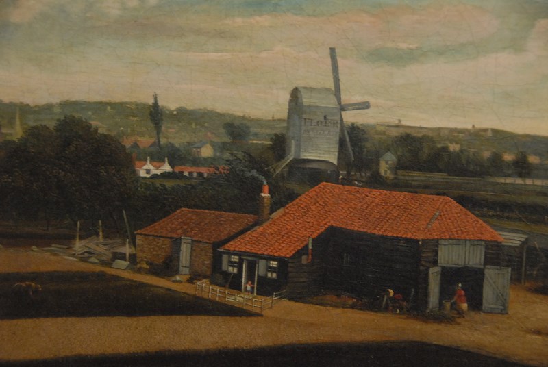Oil on canvas late 19th century Windmill Farmscape, unsigned, restretched and relined, 14 x 25.