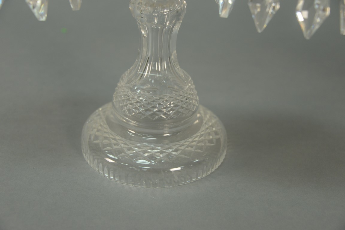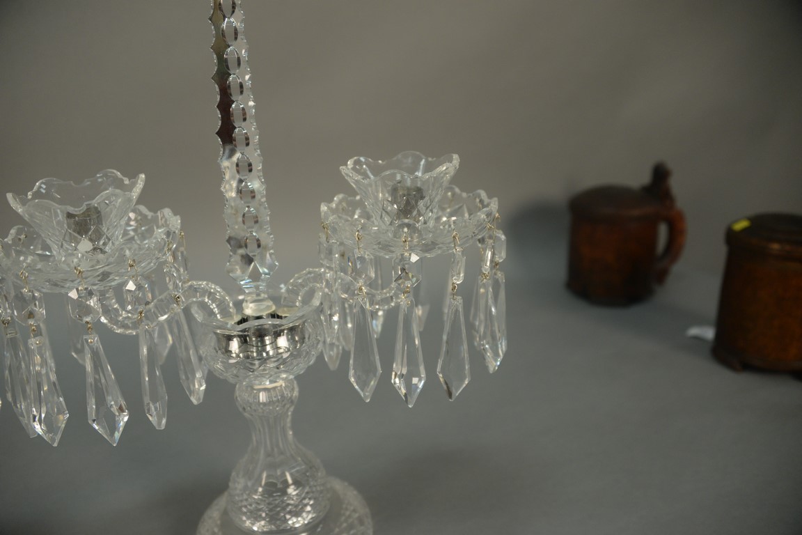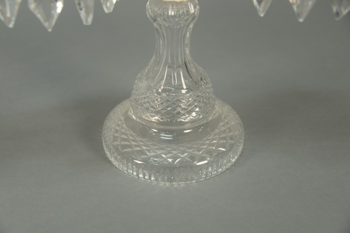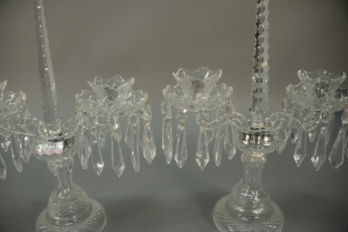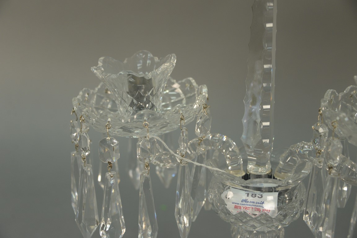 Pair of signed Waterford crystal candelabra with prisms. ht. 19in., wd. 13in.