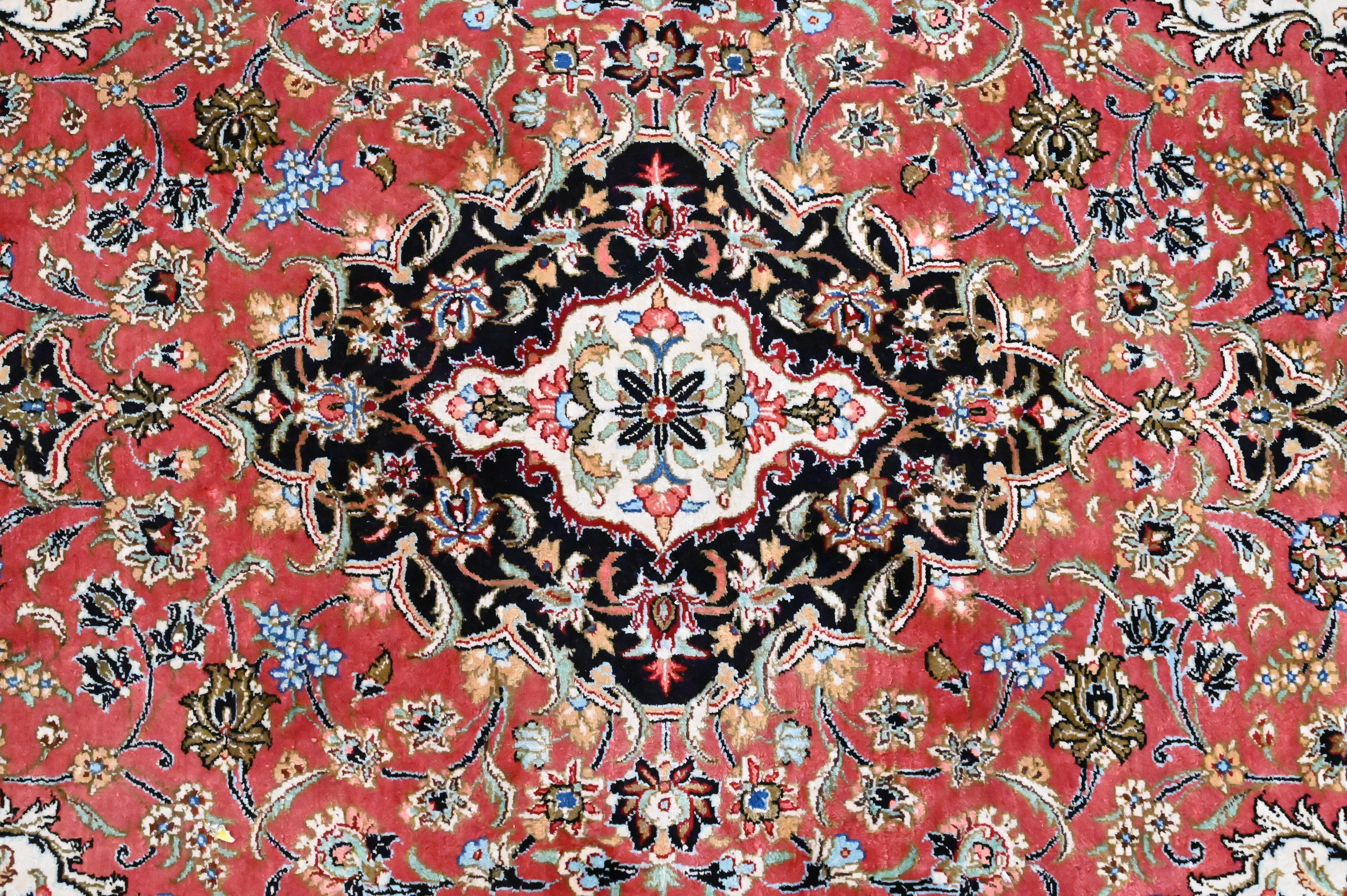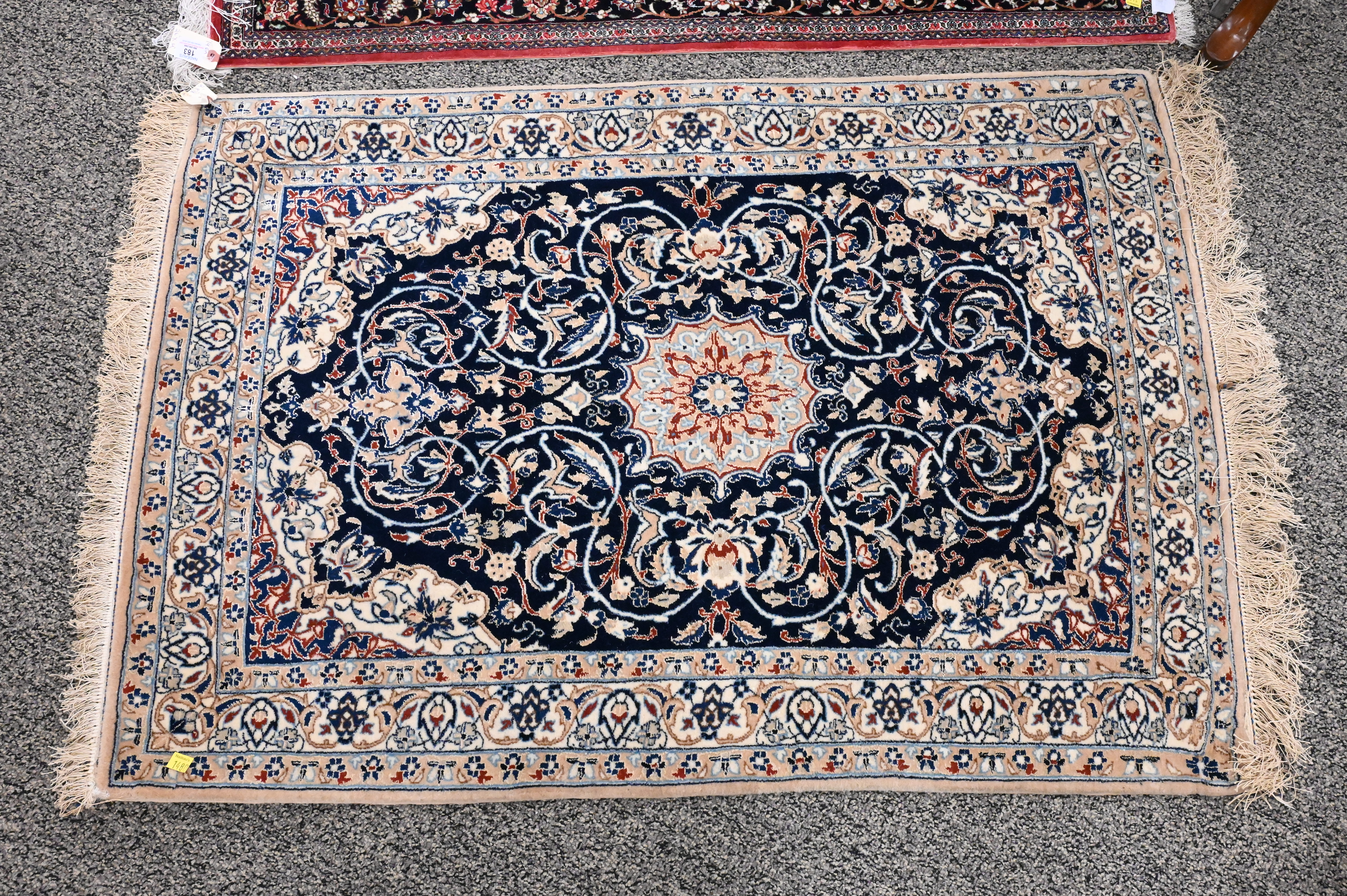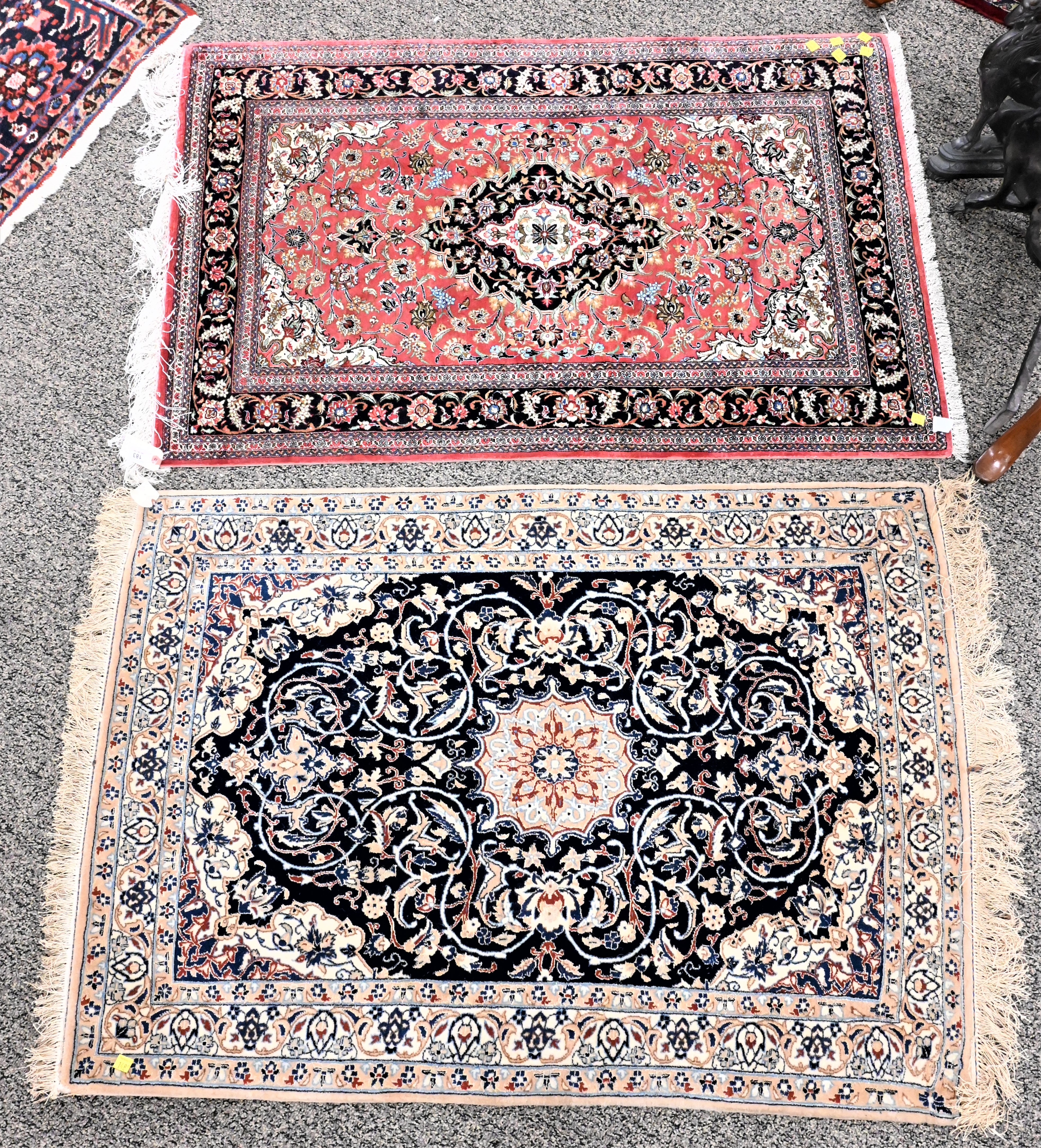 Silk Oriental Throw Rug, along with a wool oriental throw rug, 2′ 8″ x 3′ 10″, 2′ 6″ x 4′.