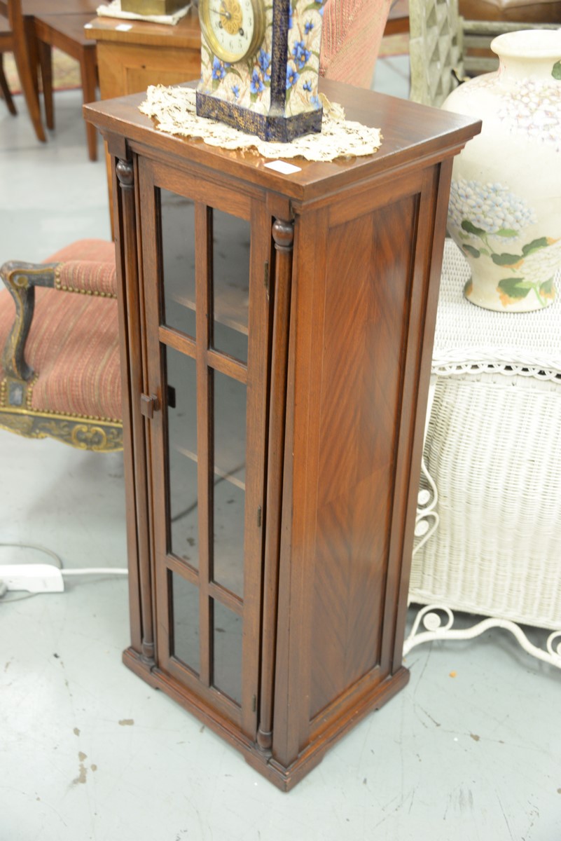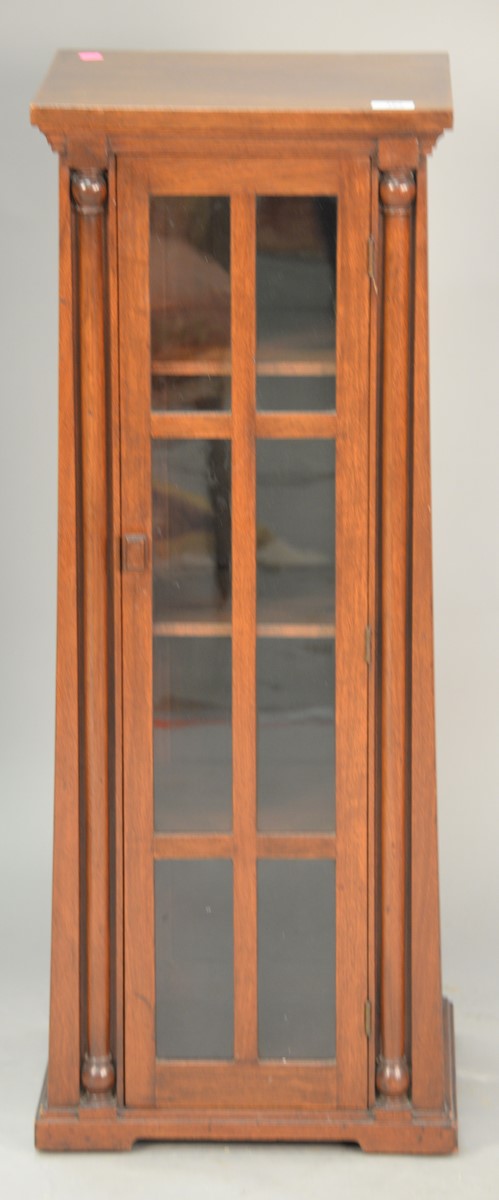 Small walnut cabinet/bookshelf with glass door. ht. 40 1/2 in. wd. 15 1/2 in.