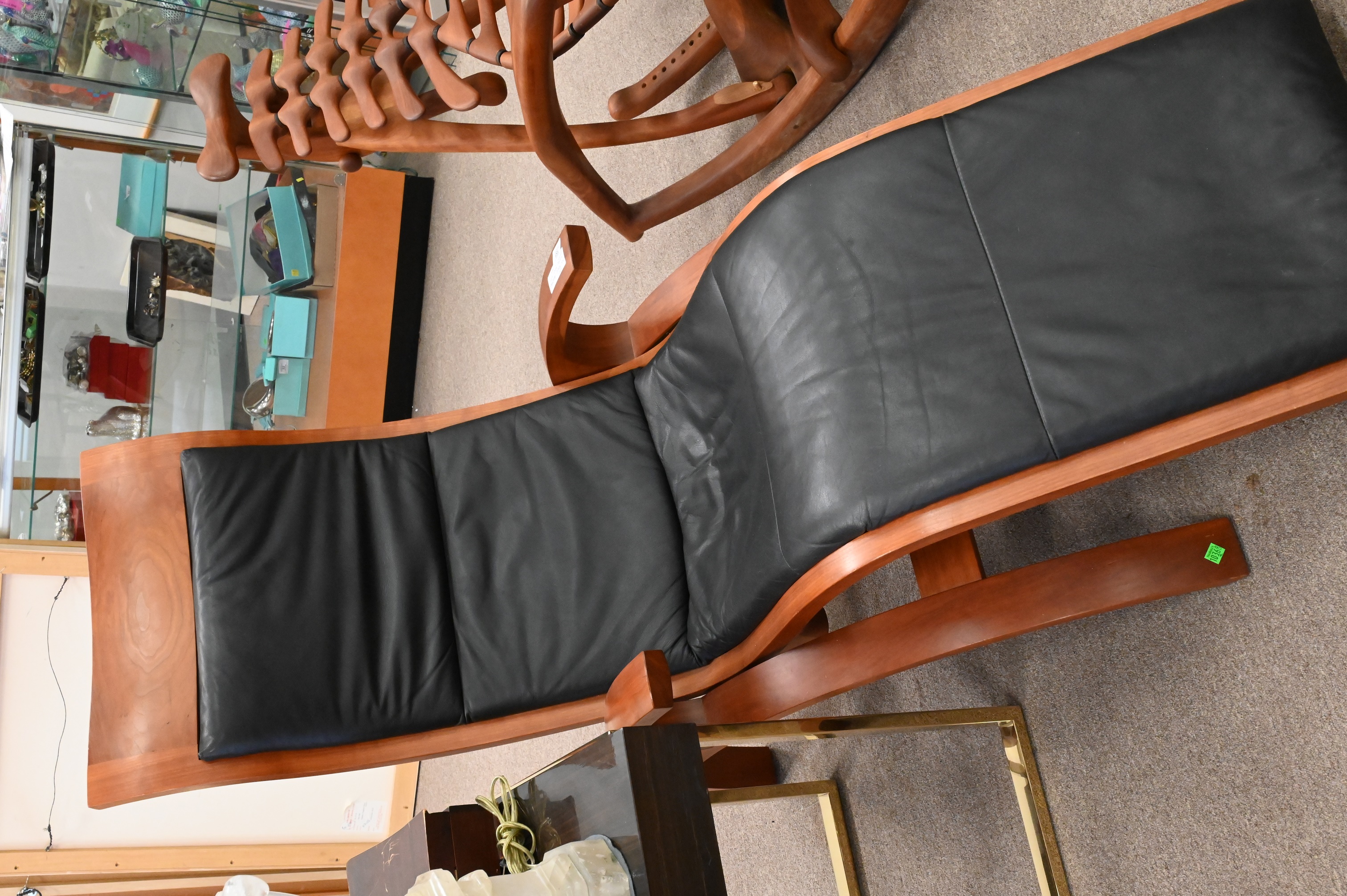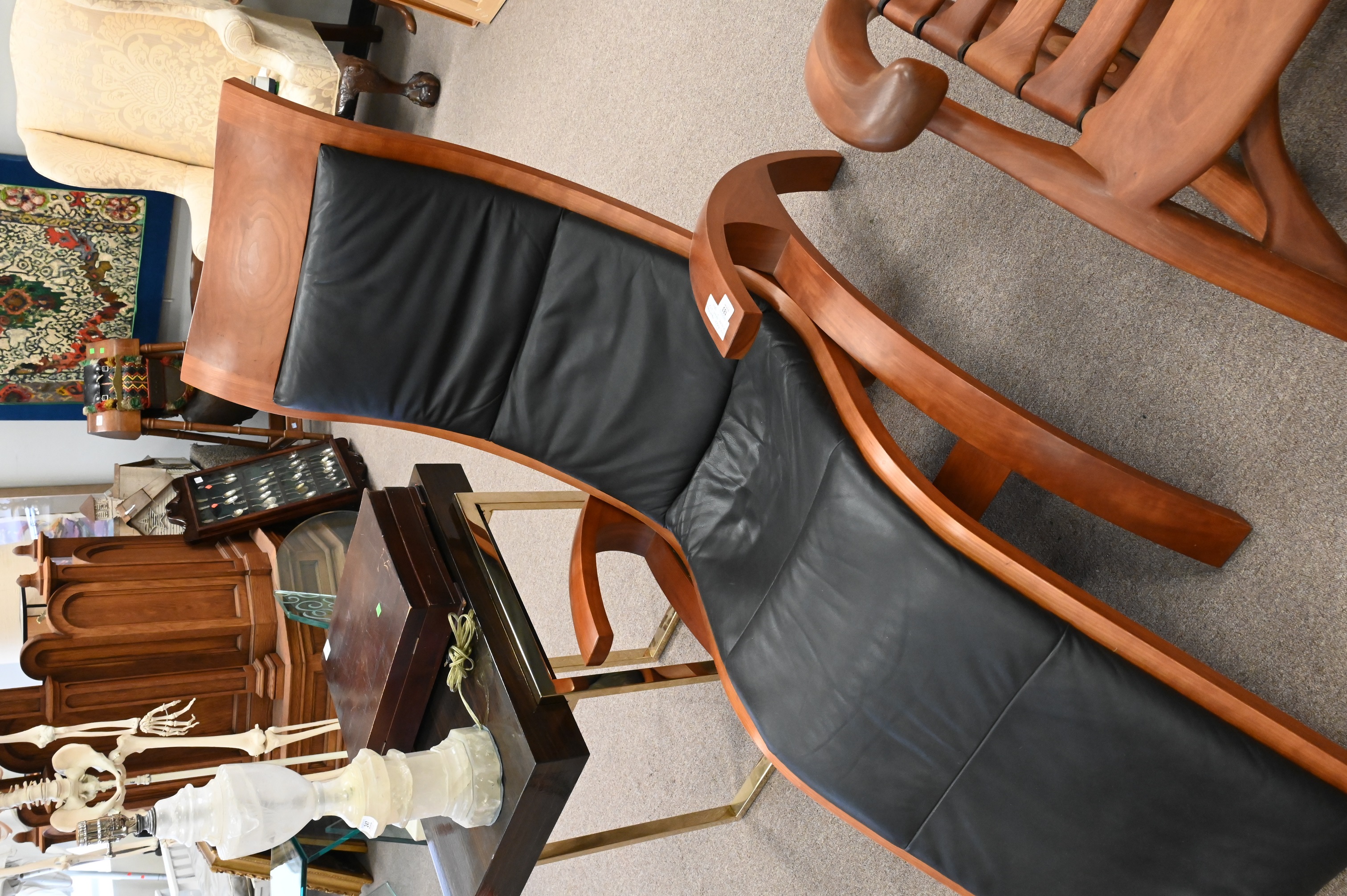 having black leather, signed Thomas Moser Cabinet Makers Auburn Maine 2008 Mark Gendron