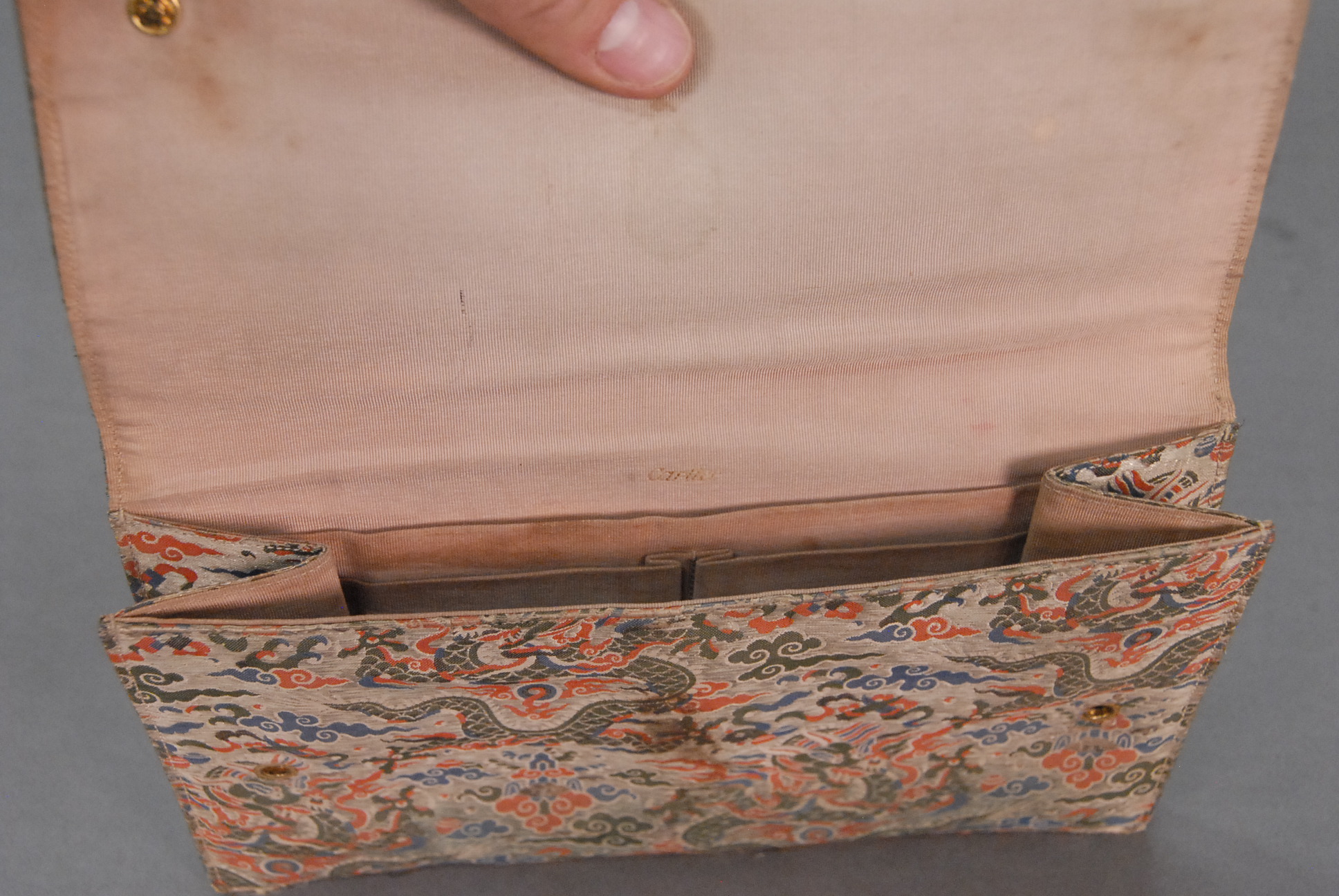 Vintage Cartier cloth evening bag with Oriental design in need of cleaning.