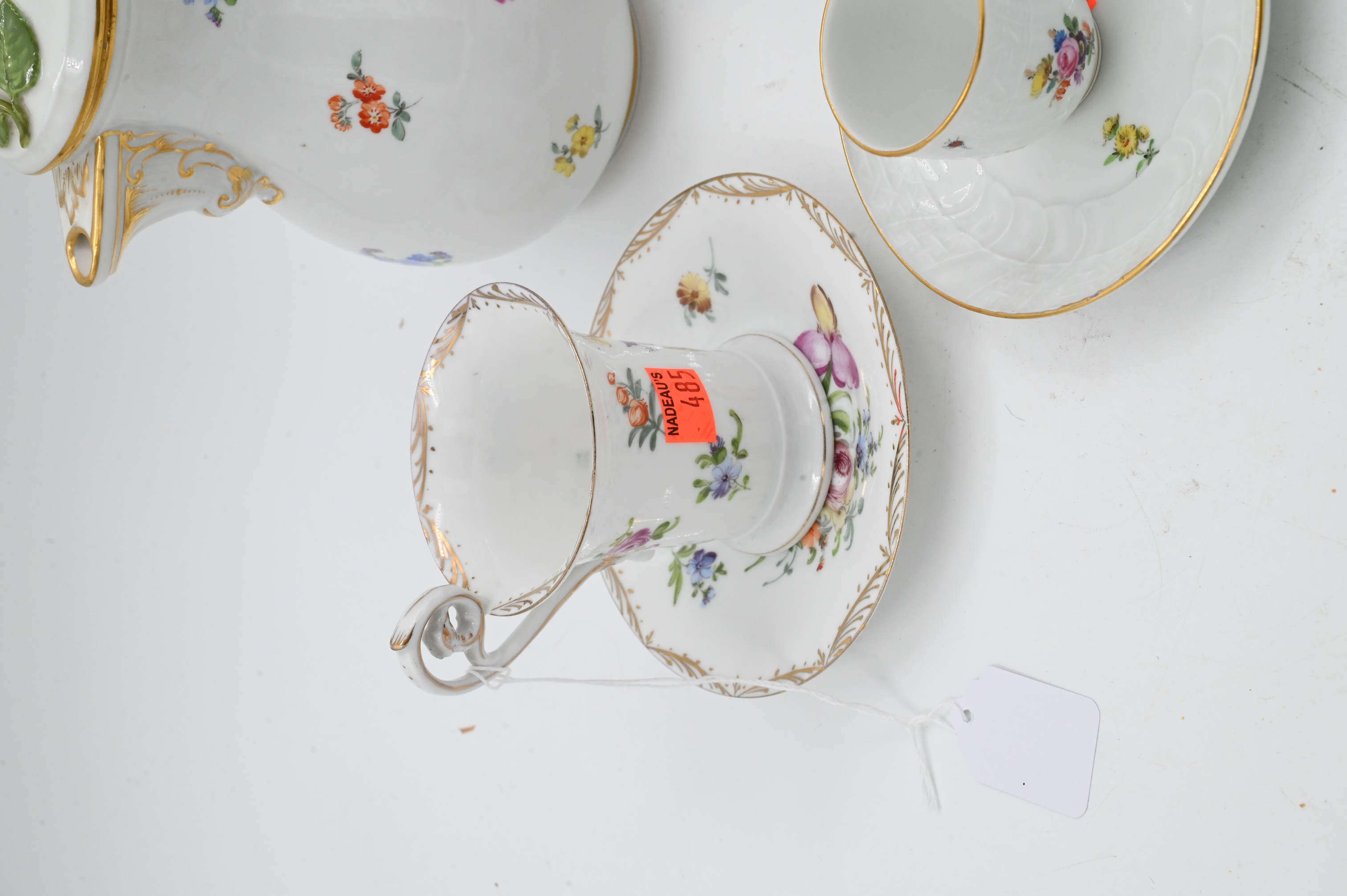 to include Meissen teapot, two cups, three saucers, four Dresden cups, seven Dresden saucers