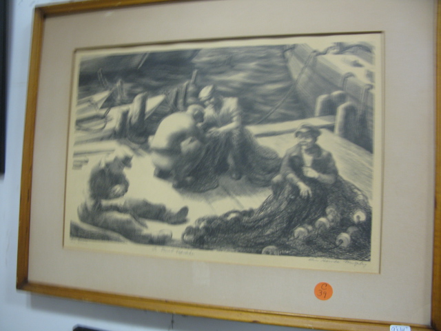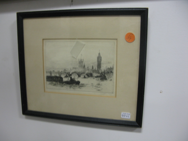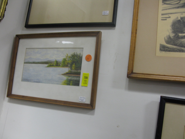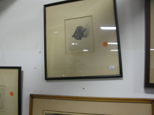 Five piece lot Hobert Horn watercolor Lake Champlain, James Arden Grant etching, 2 dogs etching signed and etching pencil signed Murphy.