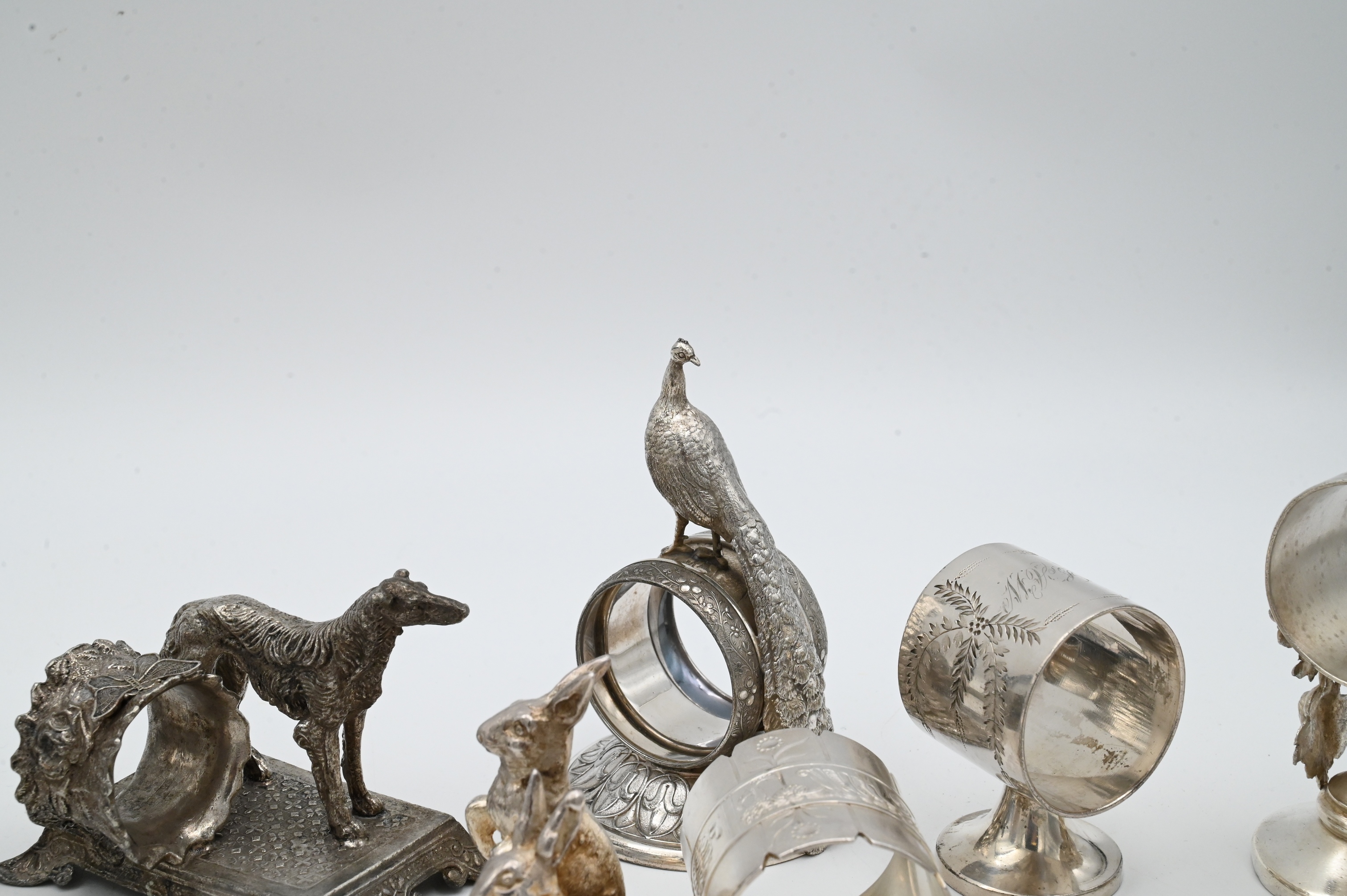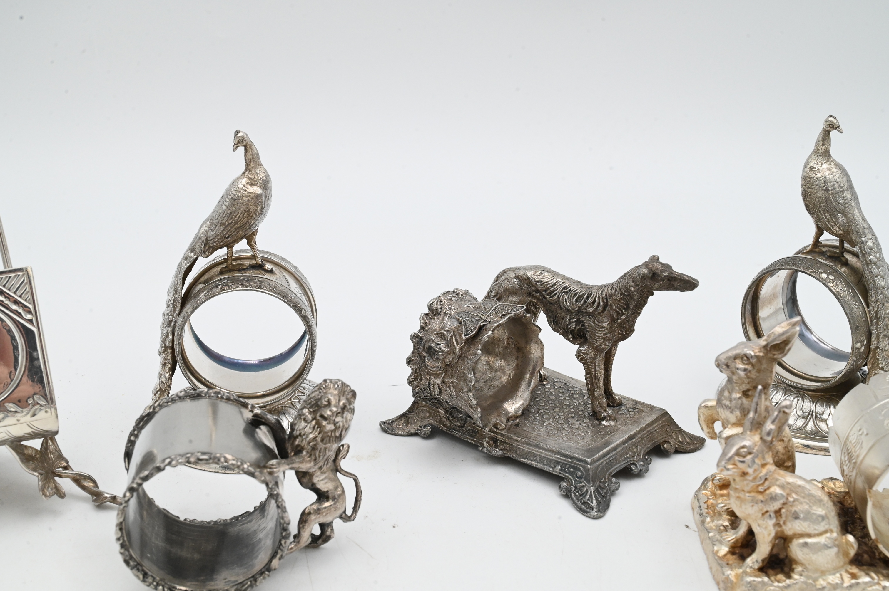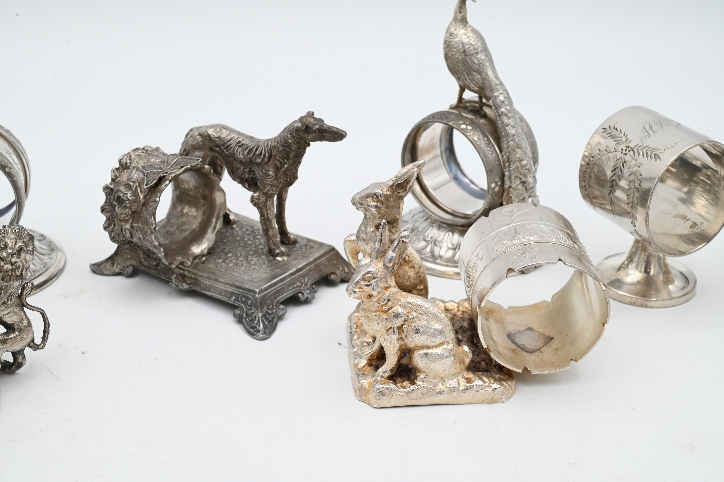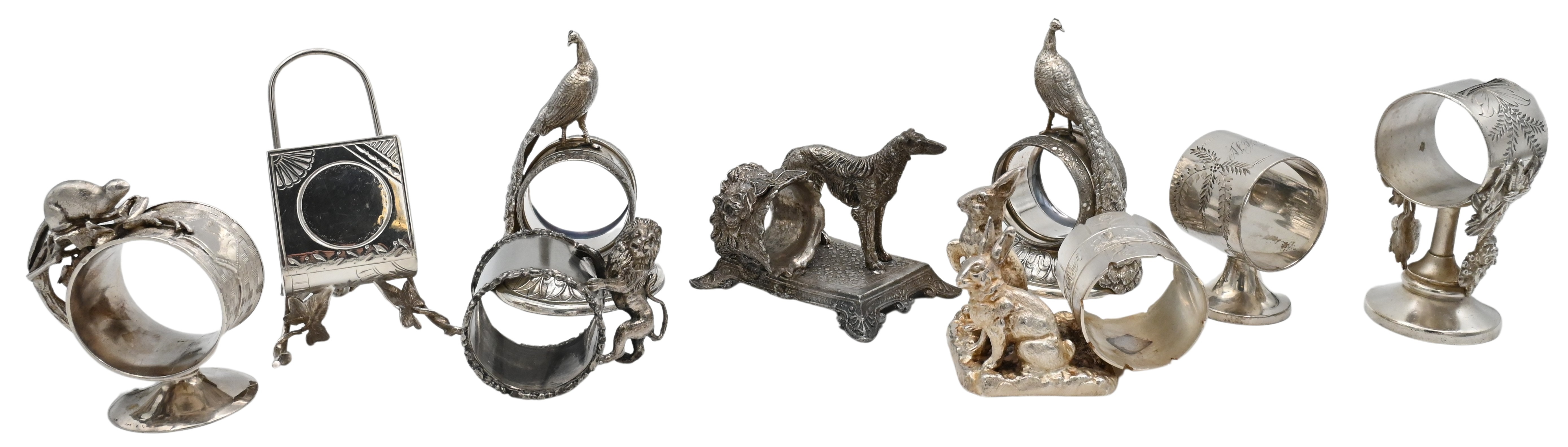 Lot 184: Group of Nine Figural Silver Plate Napkin Rings