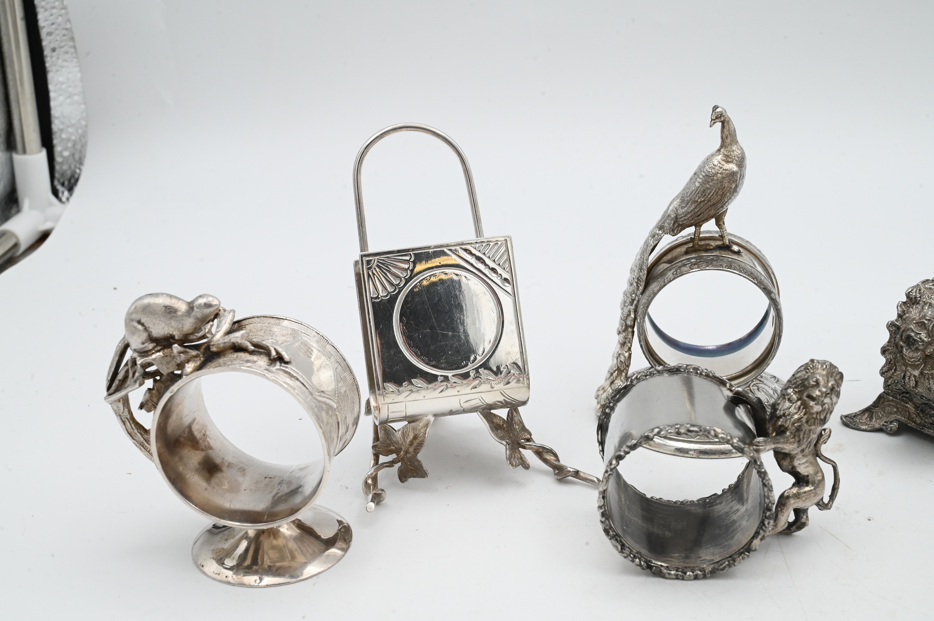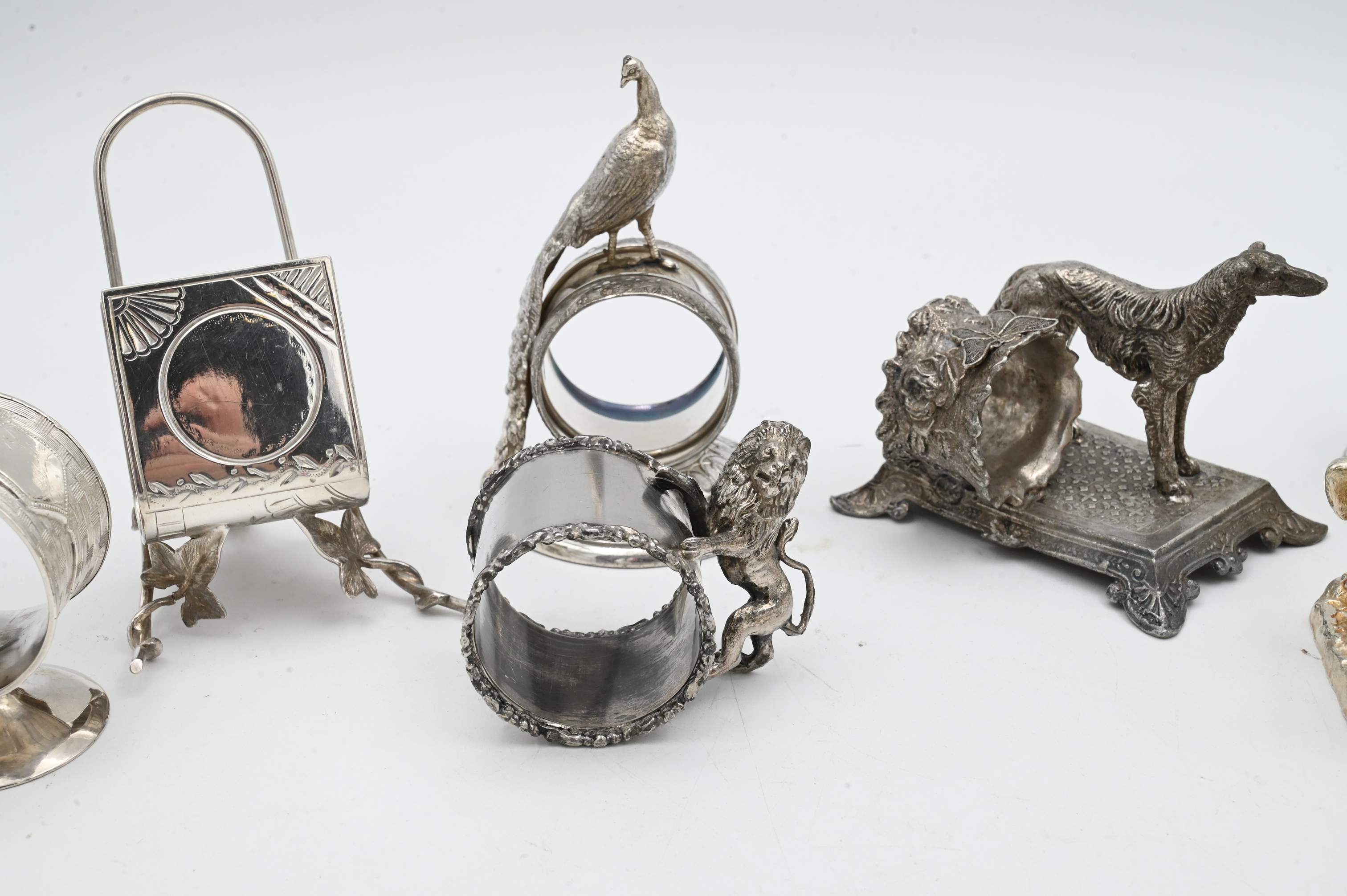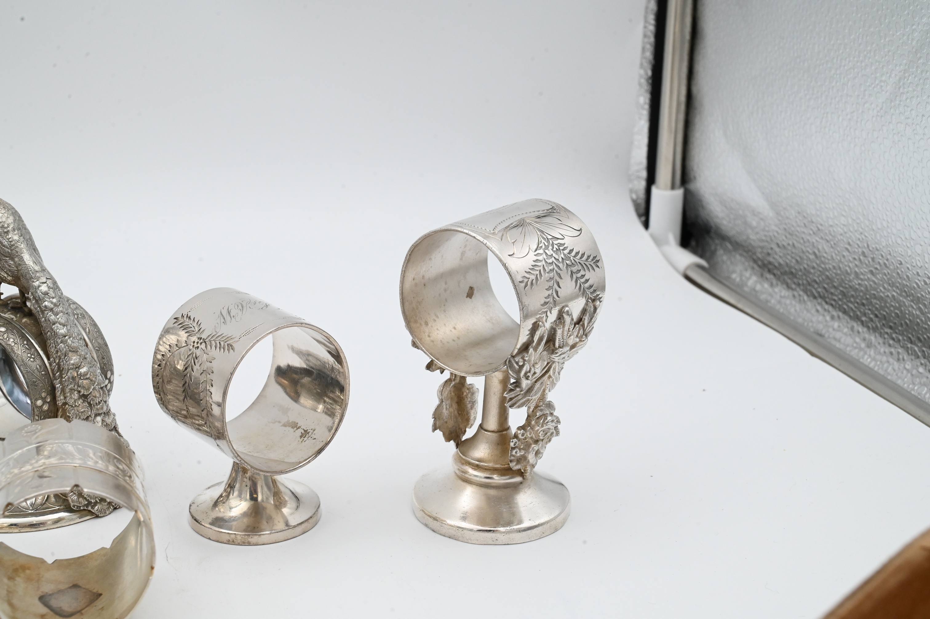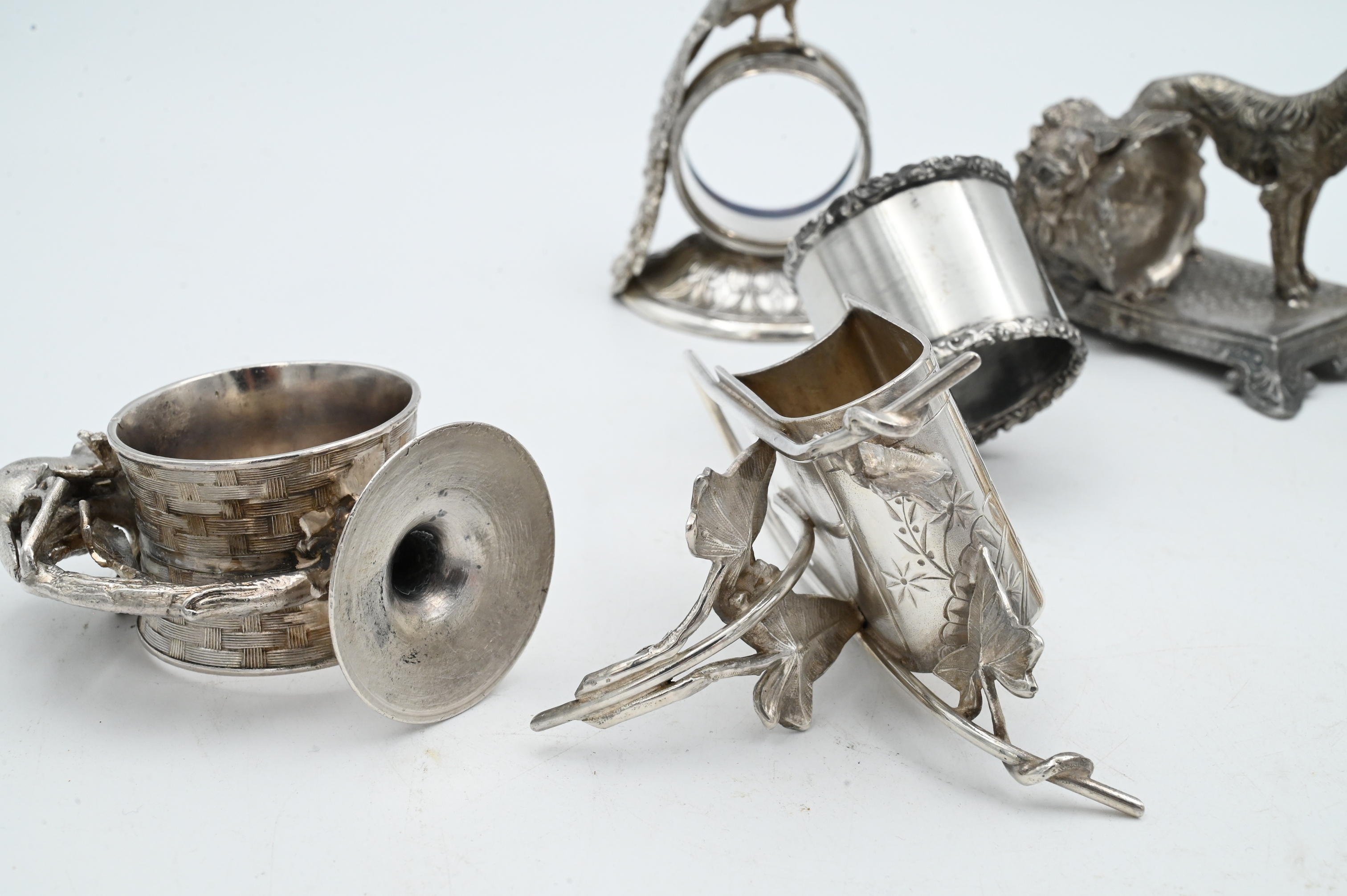 Lot 184: Group of Nine Figural Silver Plate Napkin Rings