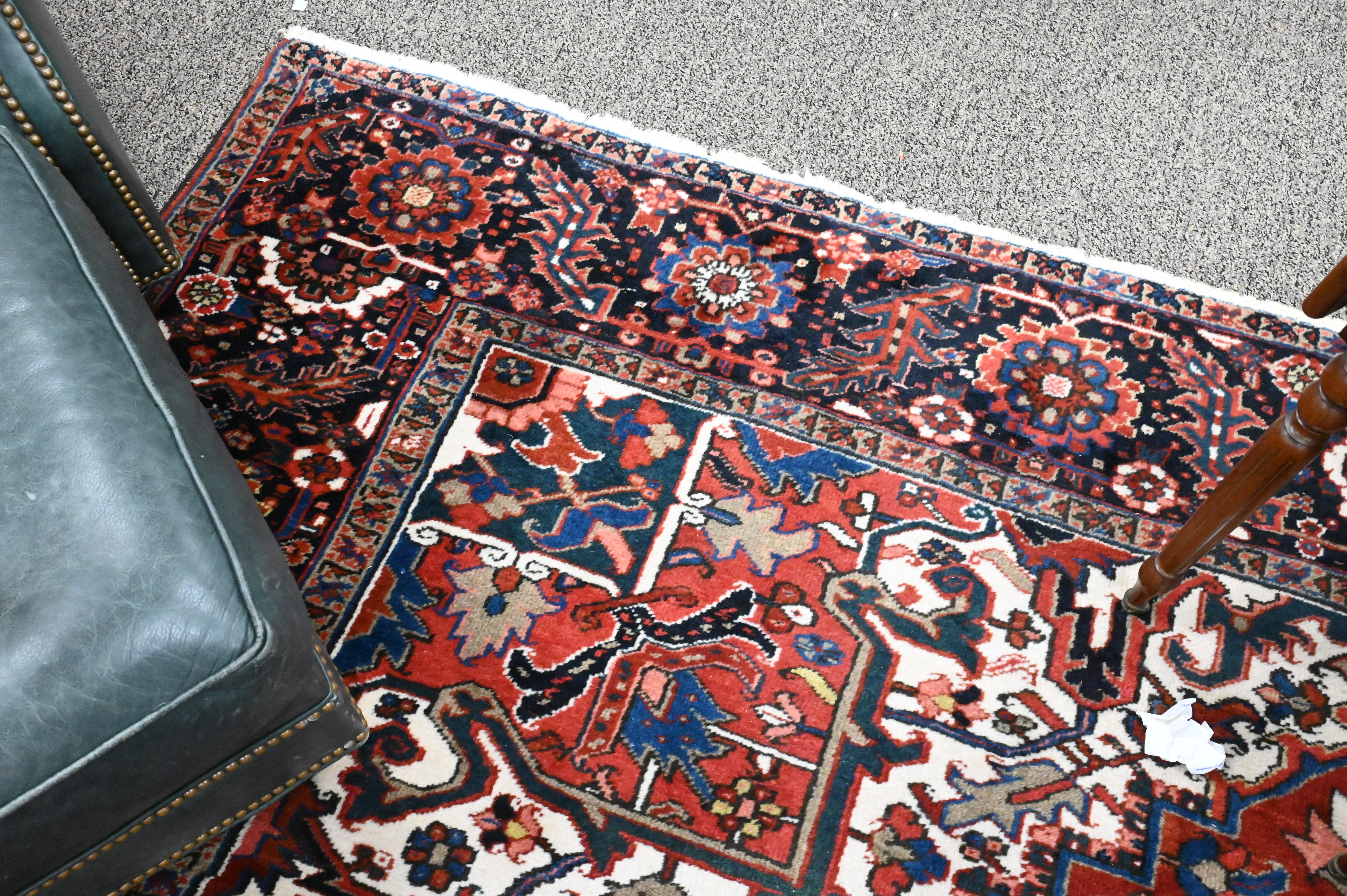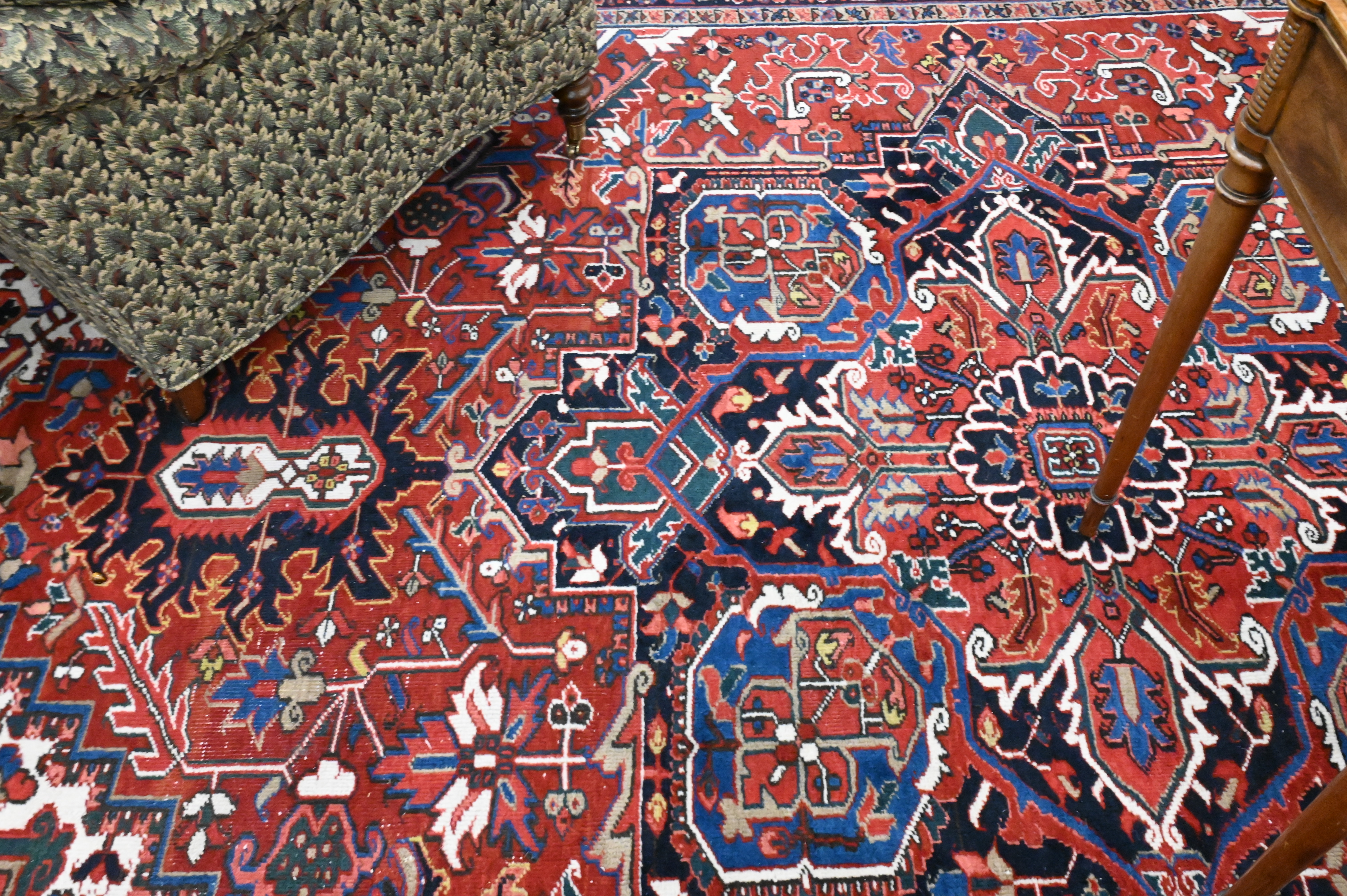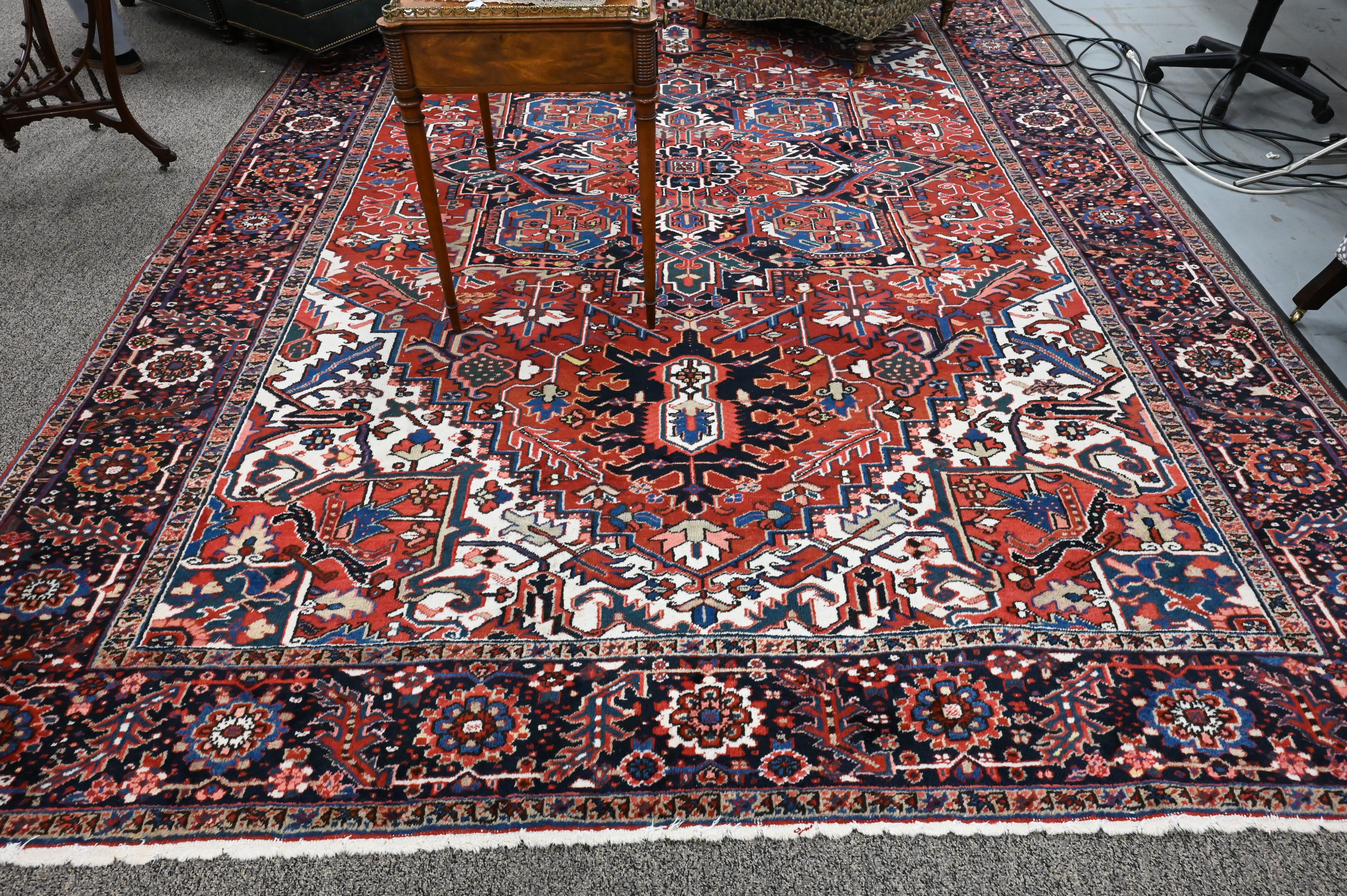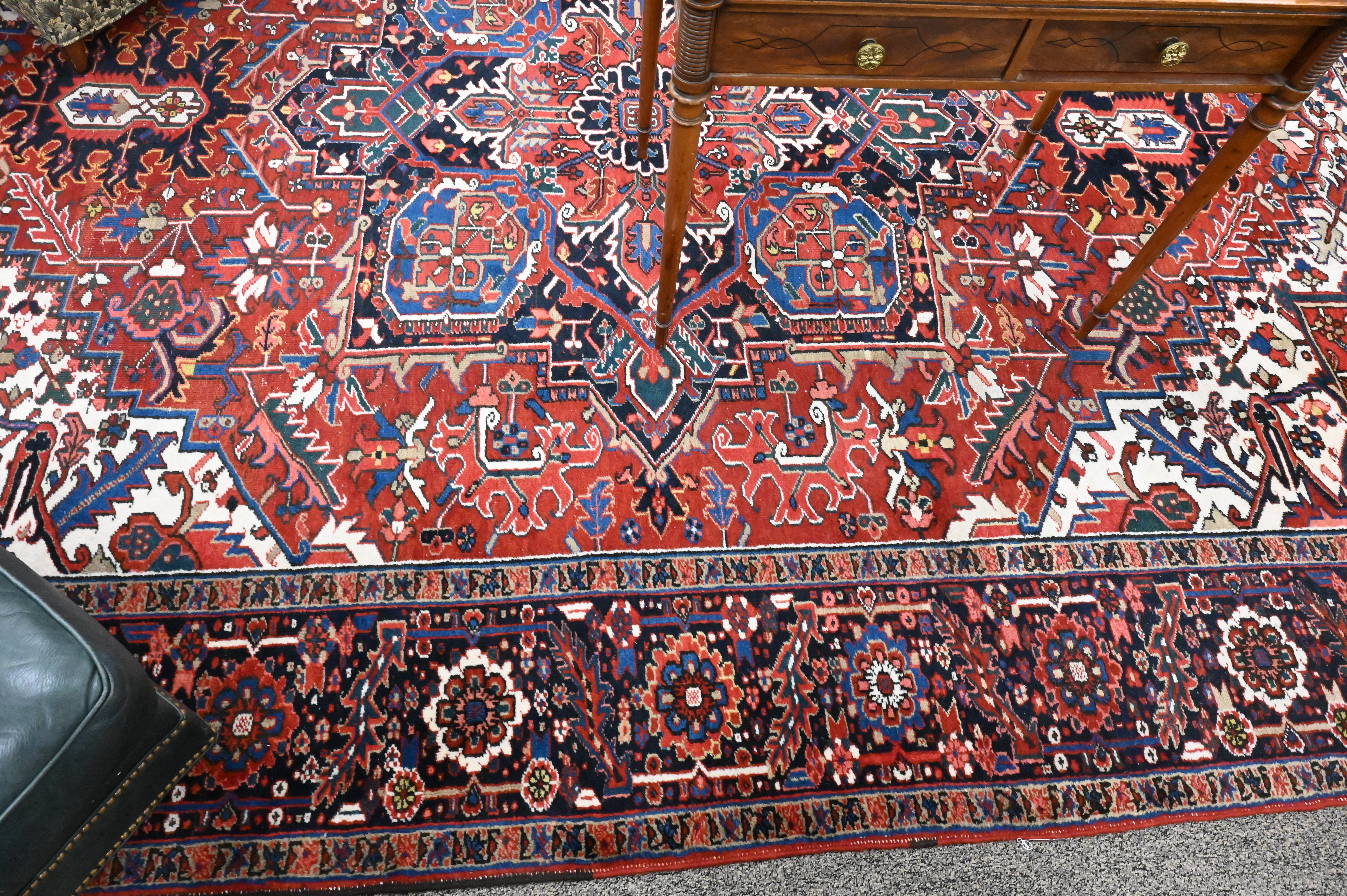 Heriz Oriental Carpet, 9′ 6″ x 13′ 4″, corner having original price tag: $23,850 .