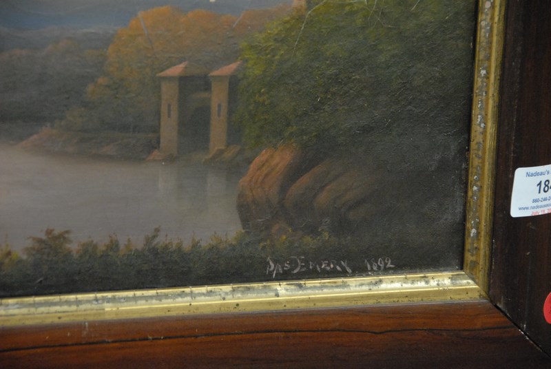 Lot 184: James Emery 1819-1899 oil on canvas sunset on the valley signed lower right Jas Emery 1892, sold at Skinners in 2002, 16 x 20.