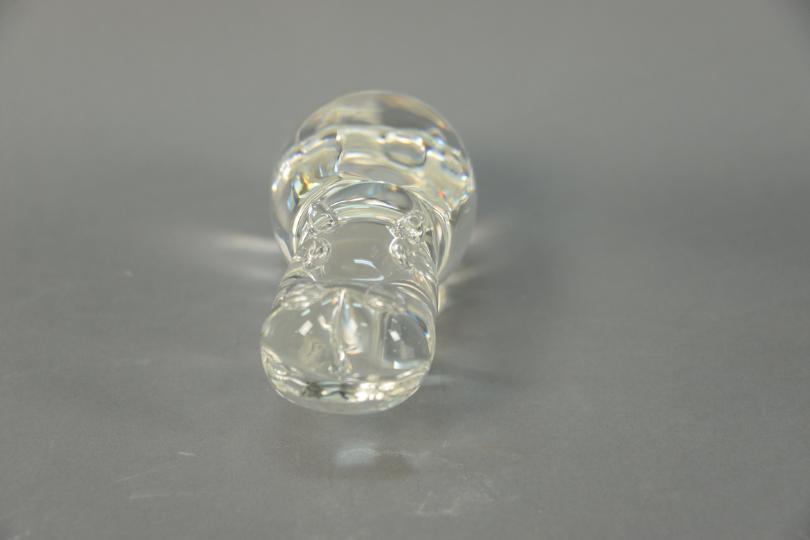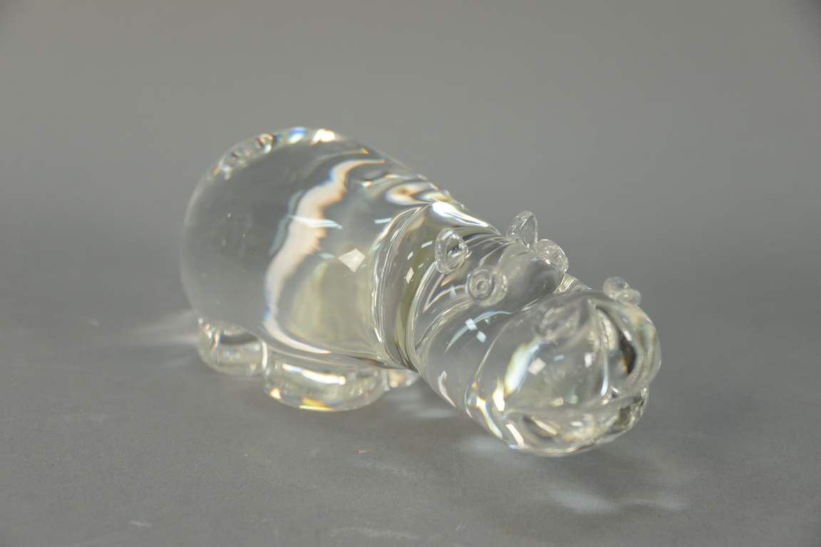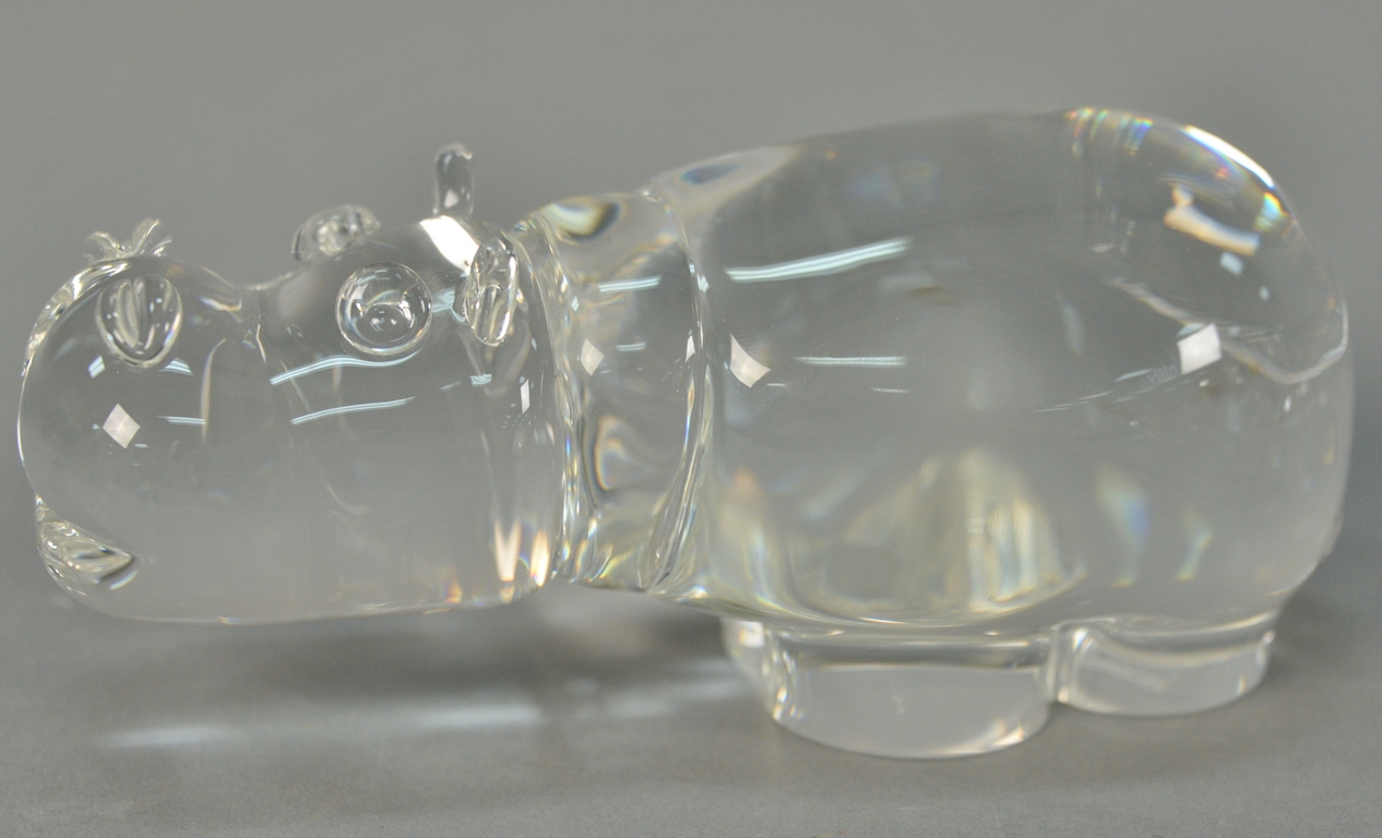Large Steuben crystal glass hippopotamus figurine signed Steuben, ht. 2 1/2in., lg. 7 1/2in.