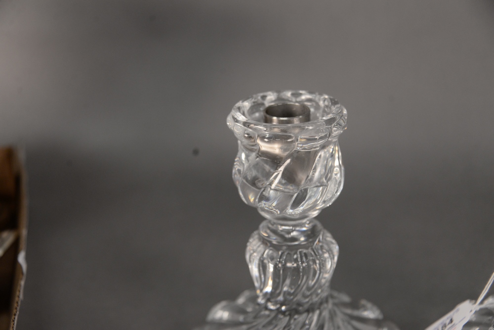 Pair of Baccarat Crystal Candlesticks, each marked to the underside, height 6 1/2 inches.