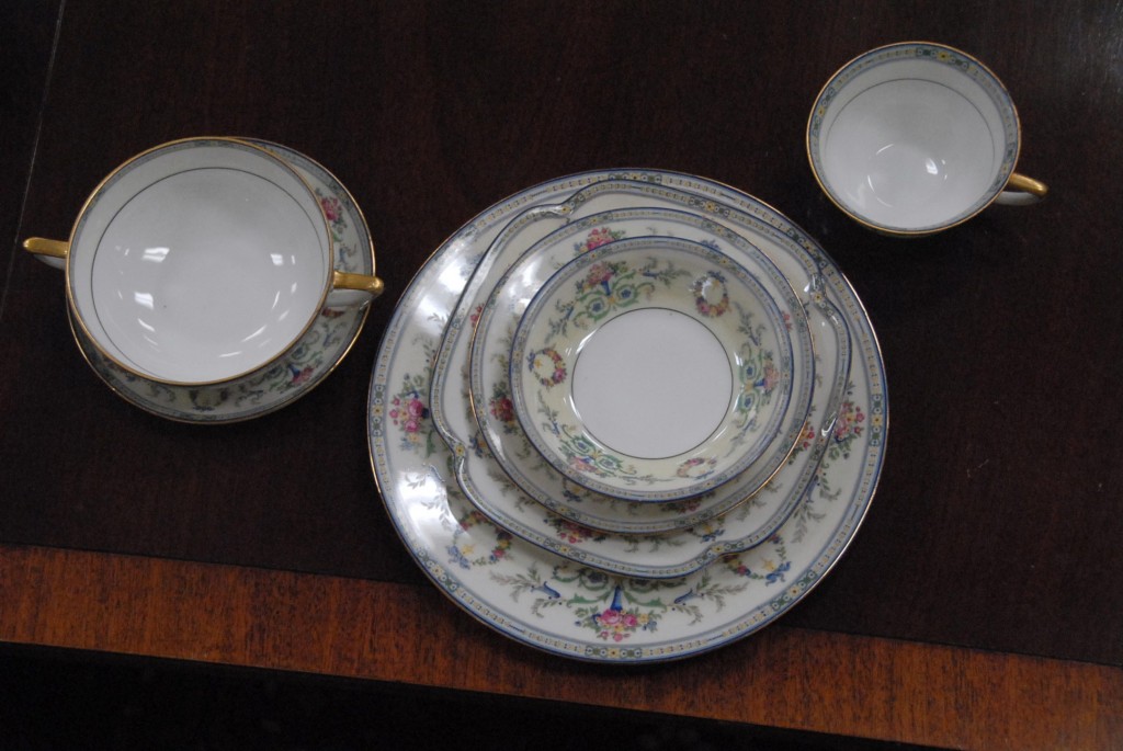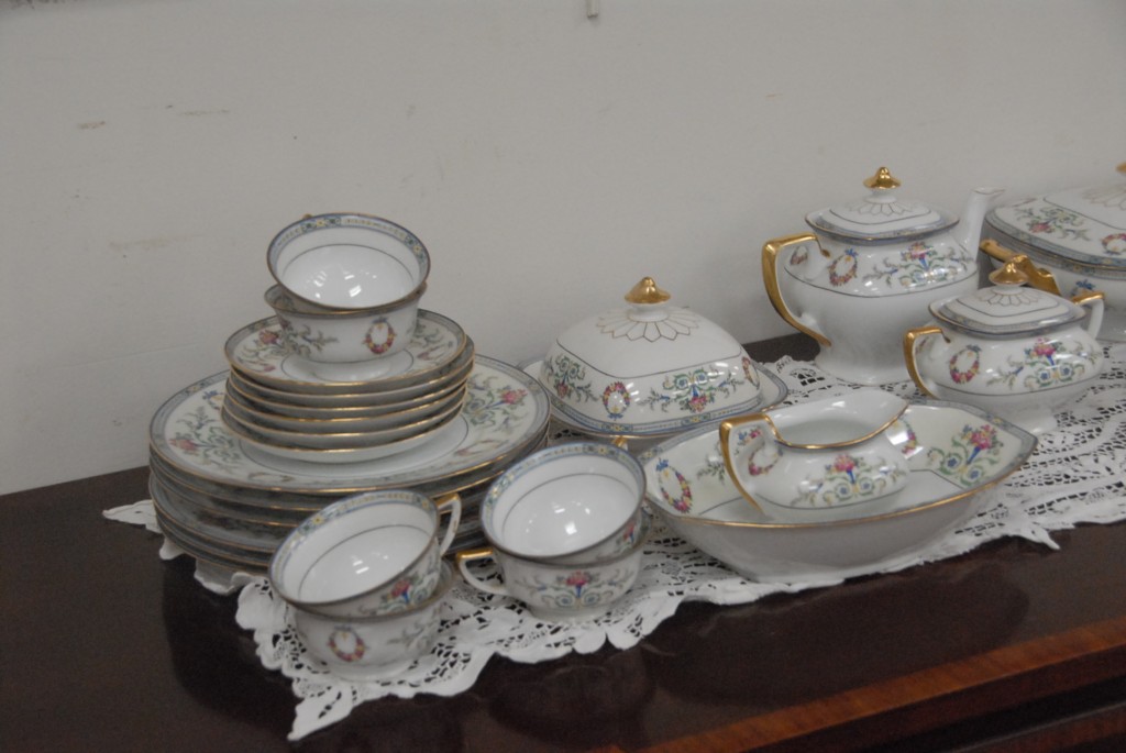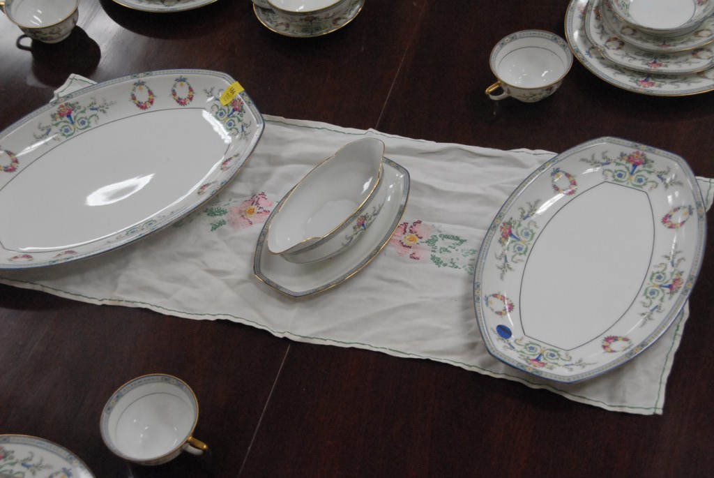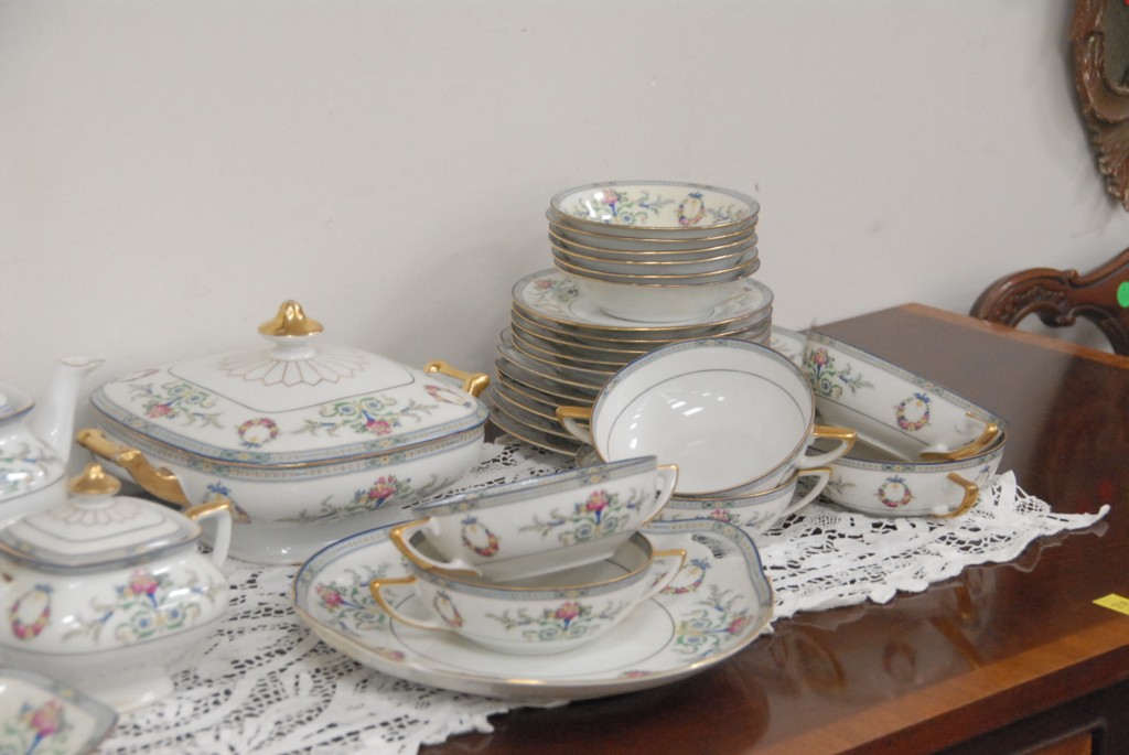 Lot 184: Set of Czechoslovakian china dinnerware, setting for twelve plus serving pieces, 94 pieces total.