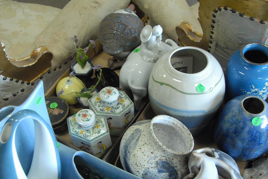 Three box lots of various pottery, cloisonn, porcelain, etc.