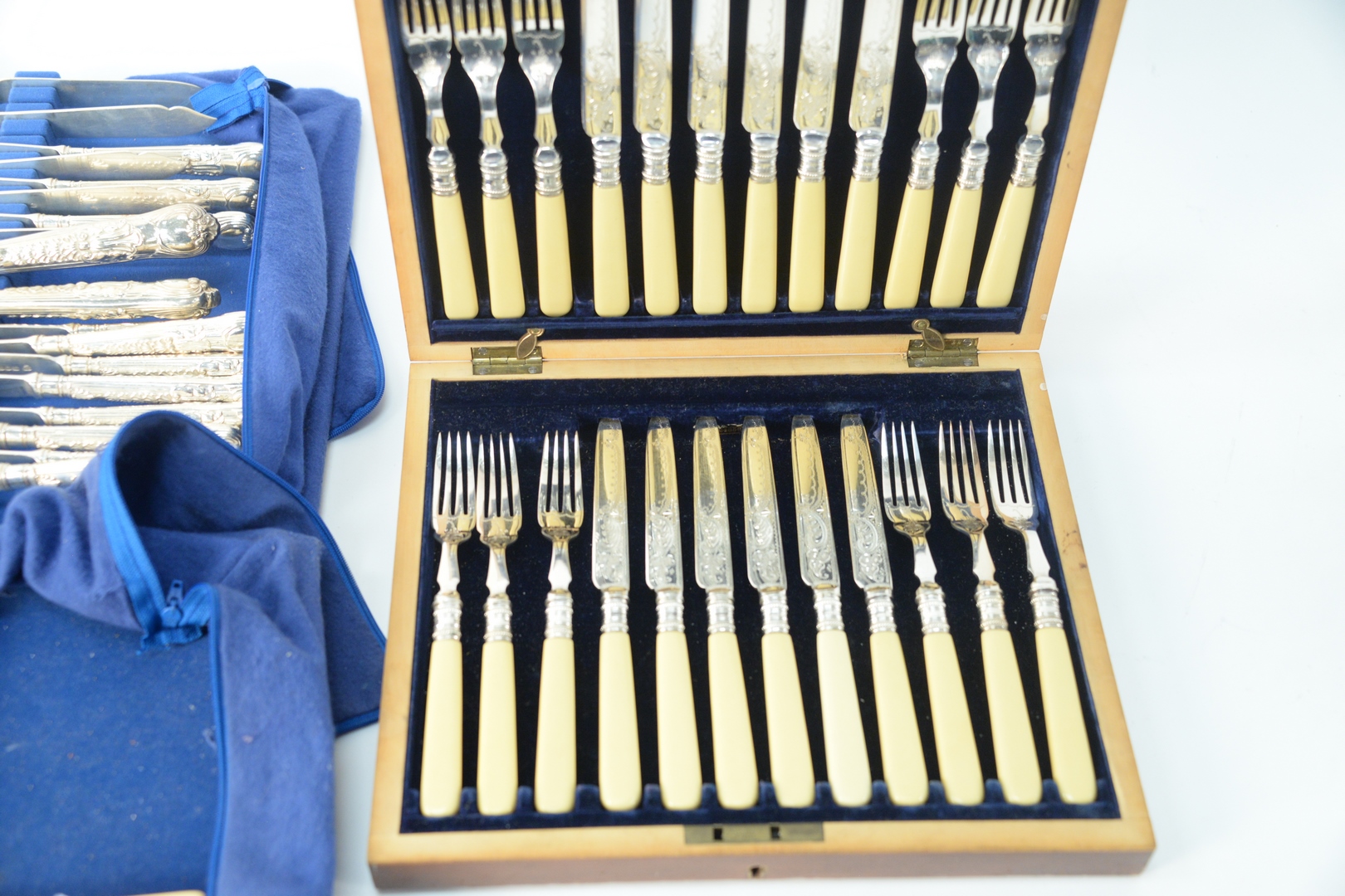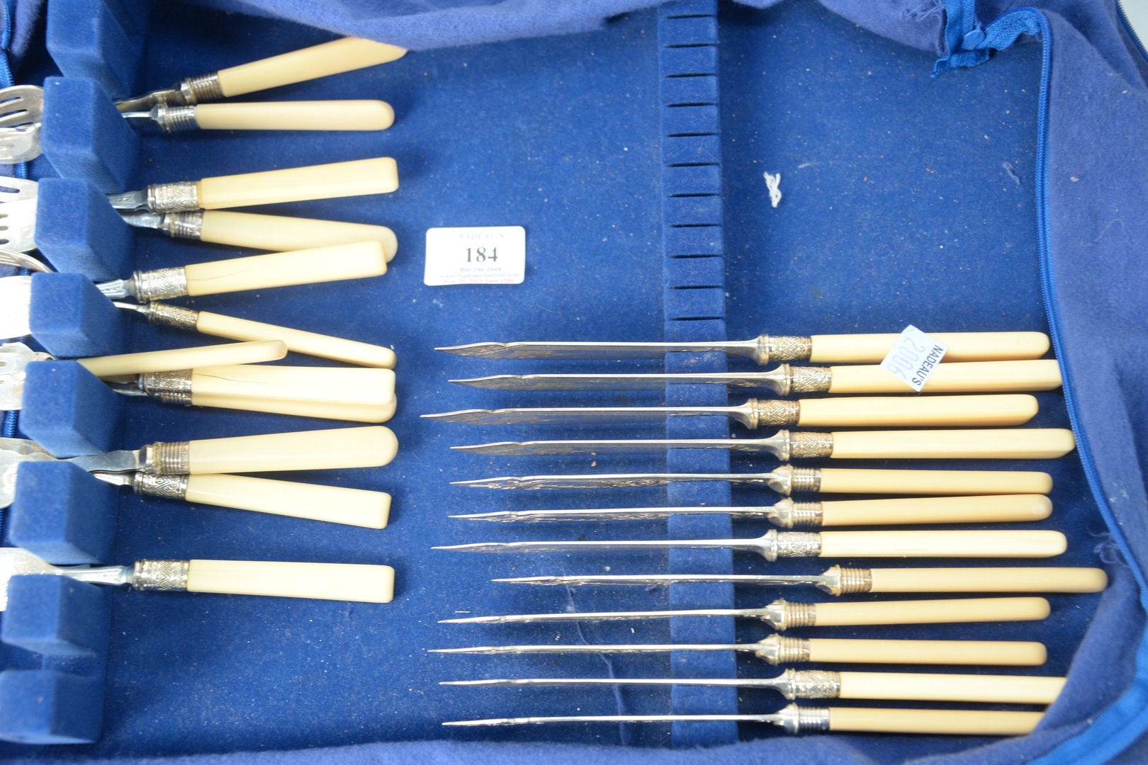 Three Fish Sets, one in fitted box, 32 pieces, 24 pieces, 24 pieces.