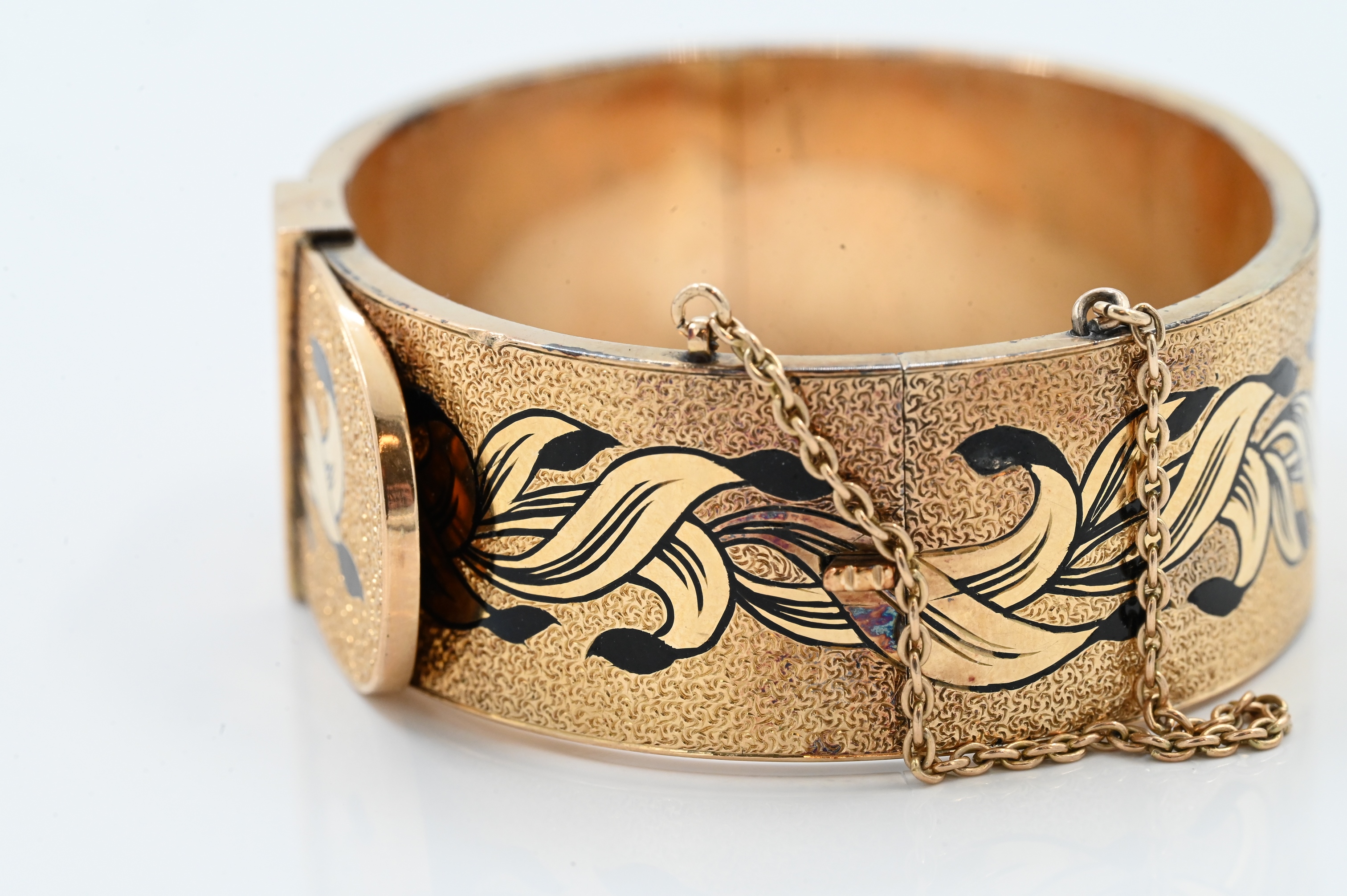 Lot 184: Victorian Gold and Enamel Hinged Bangle