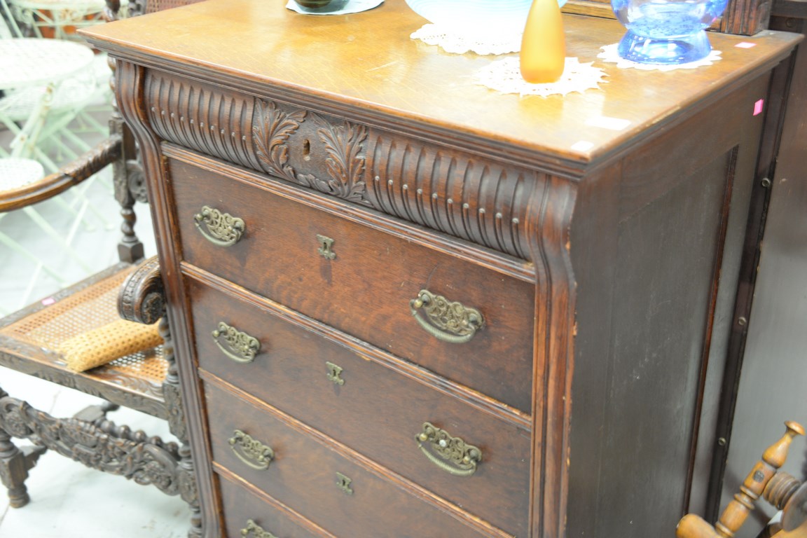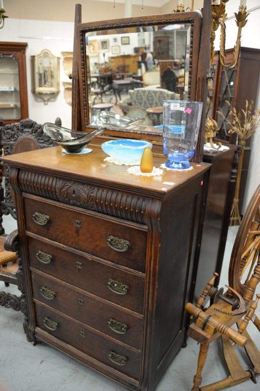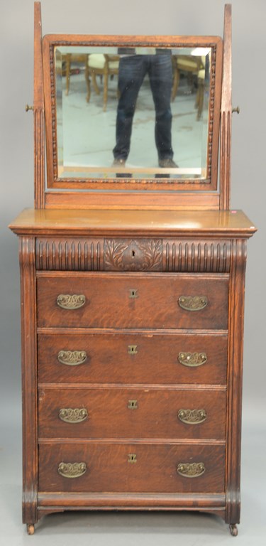 Victorian oak chest and mirror. ht. 75 1/2 in. wd. 34 in.