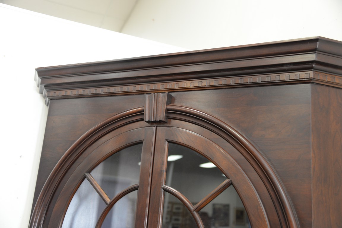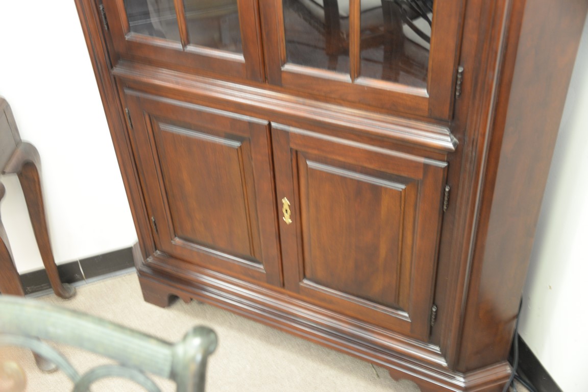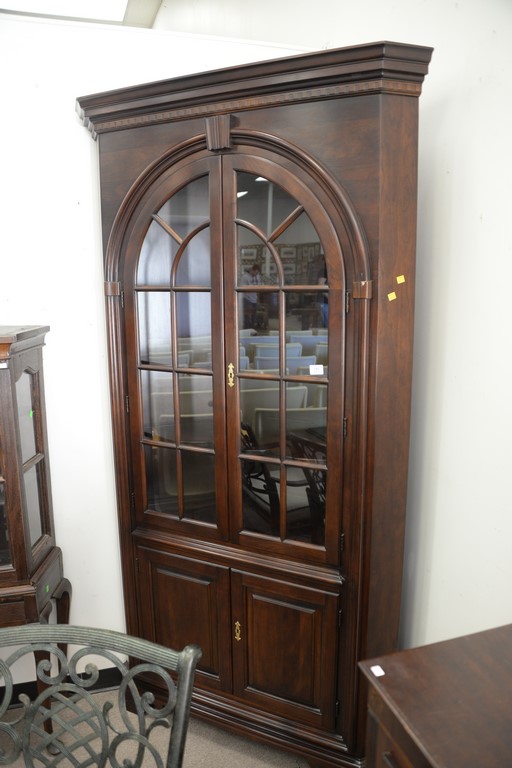 Dark cherry corner cupboard, Old Towne. ht. 85in., wd. 45in., dp. 24in.