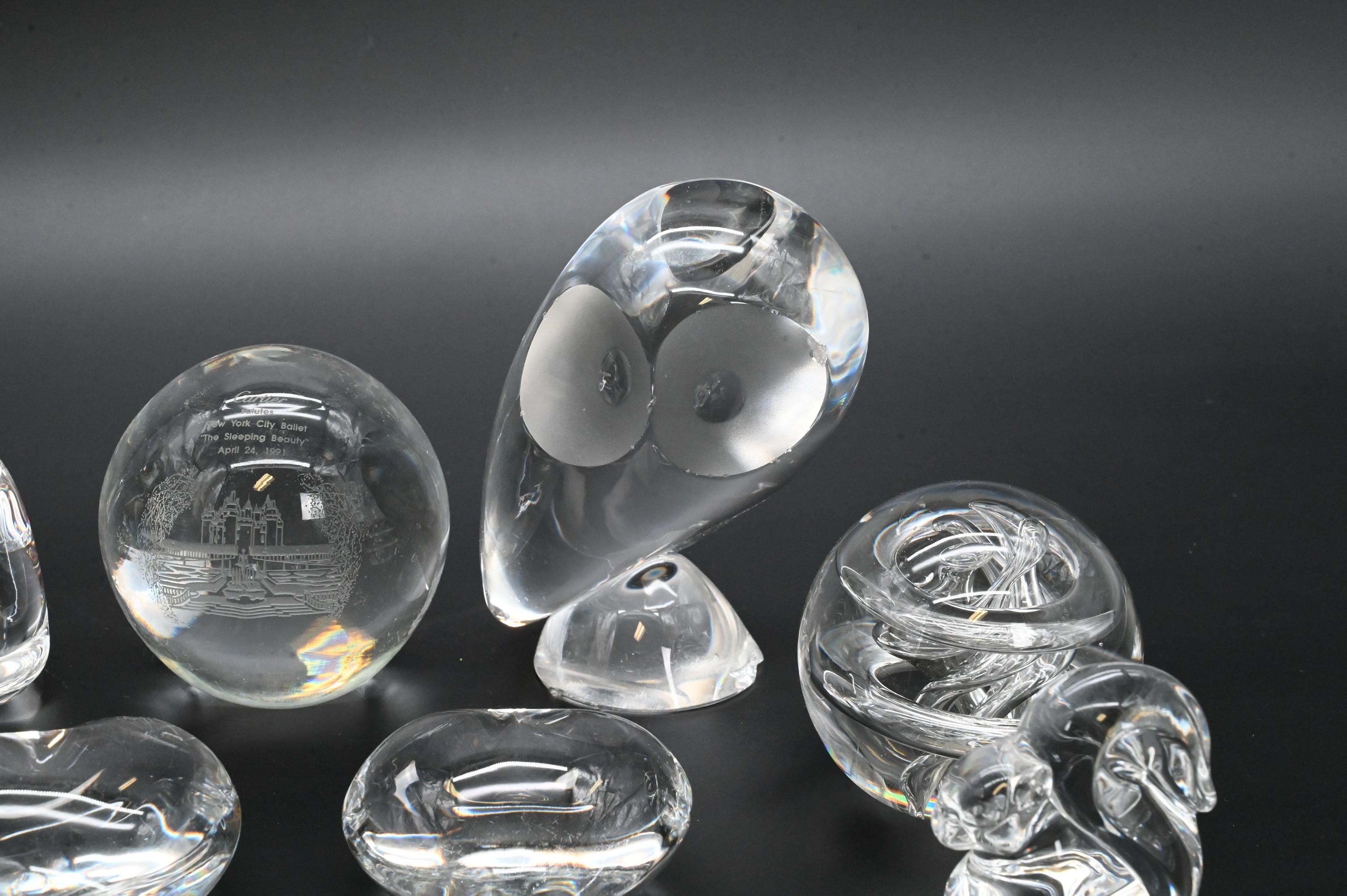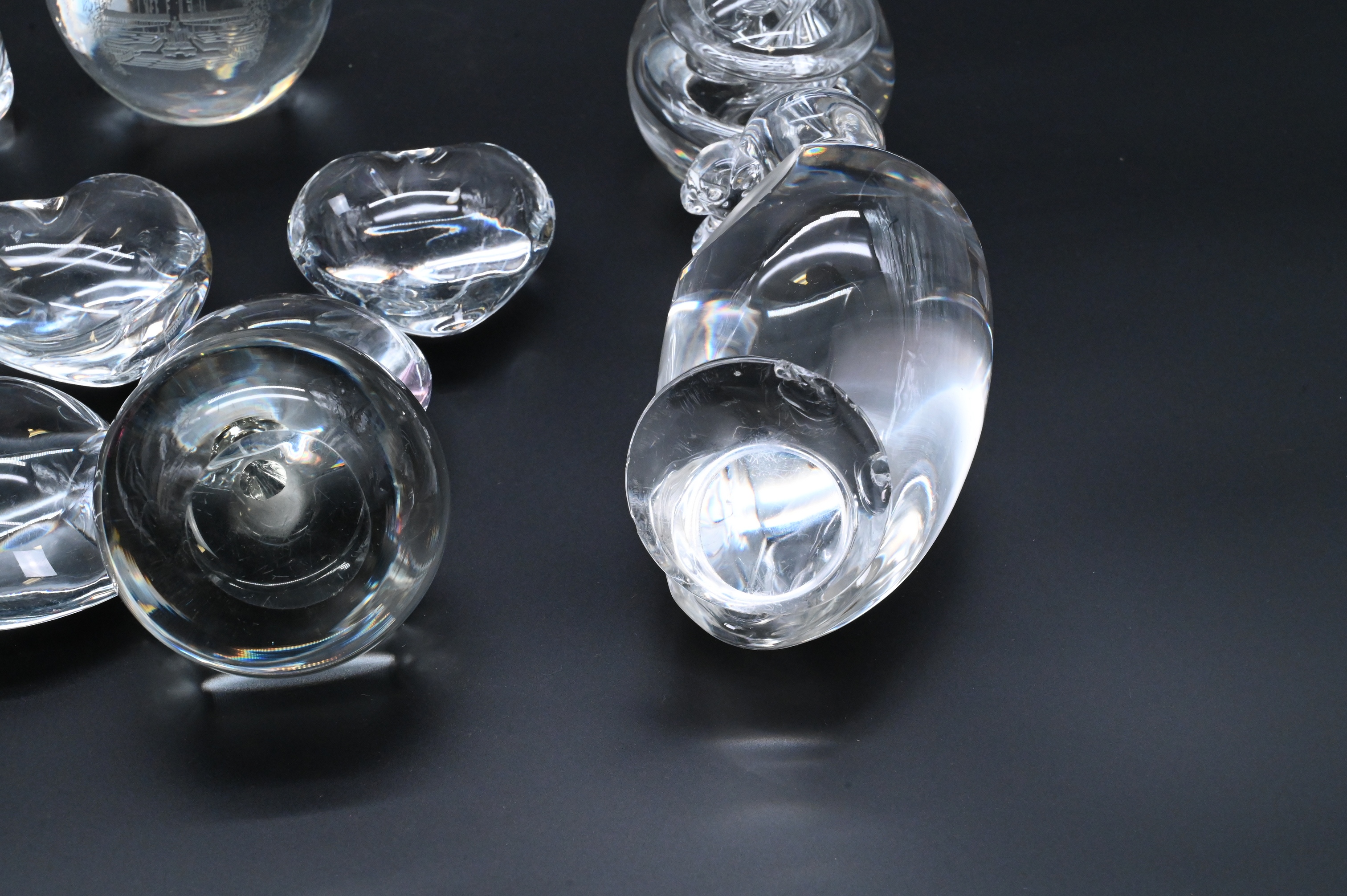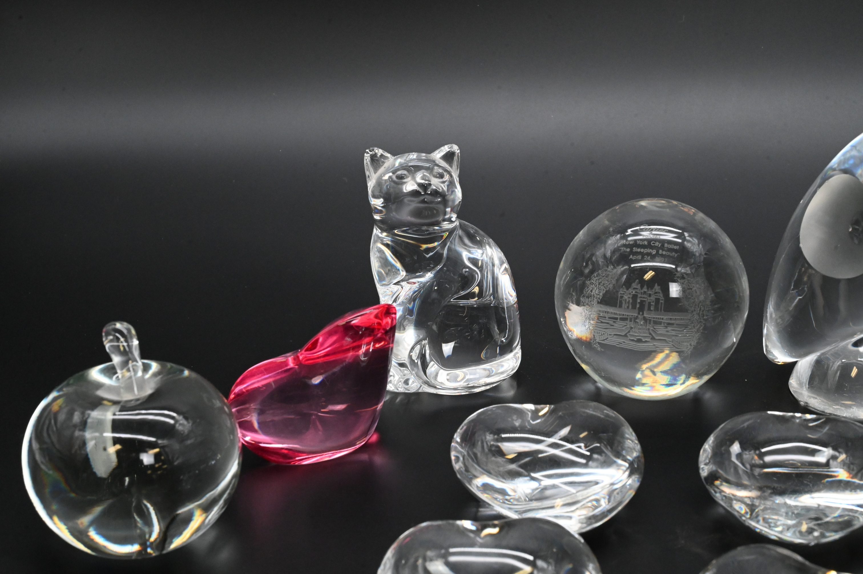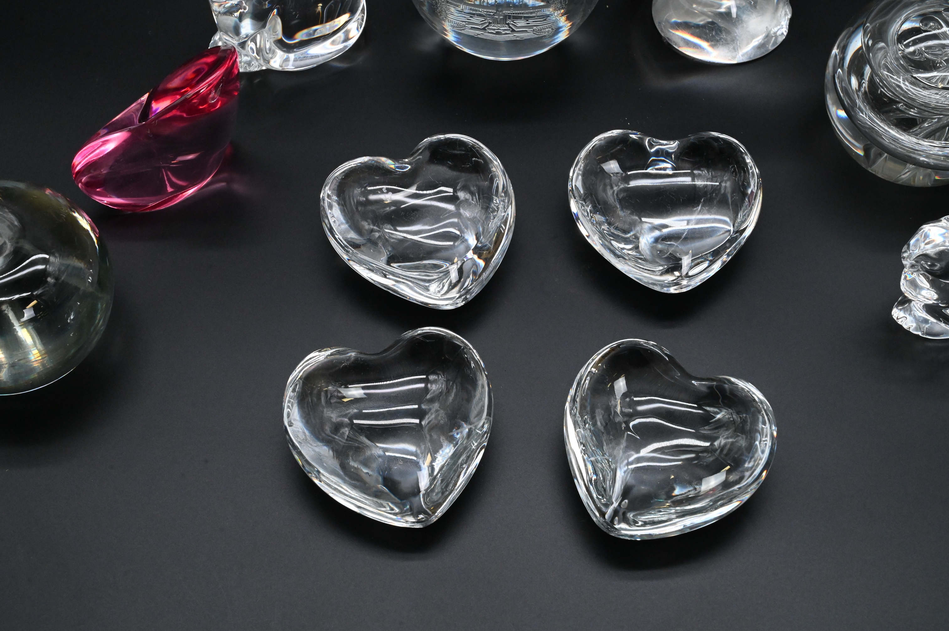 Steuben cat, squirrel, owl, four Baccarat heart paperweights, Cartier paperweight, Christofle heart, etc…