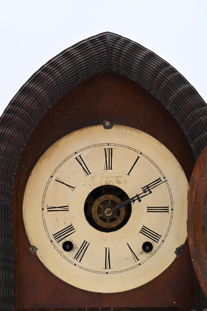 eight day with brass movement, dial marked J.C. Brown, Bristol, Connecticut