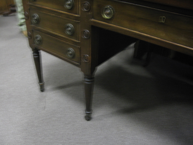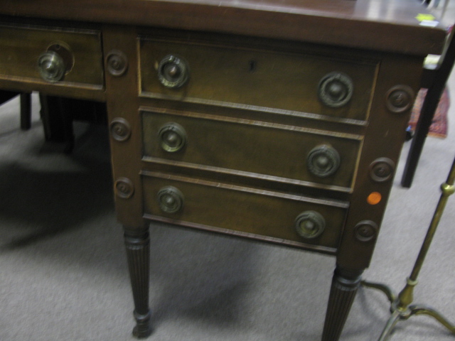 Lot 185: Mahogany kneehole desk with on turned legs.