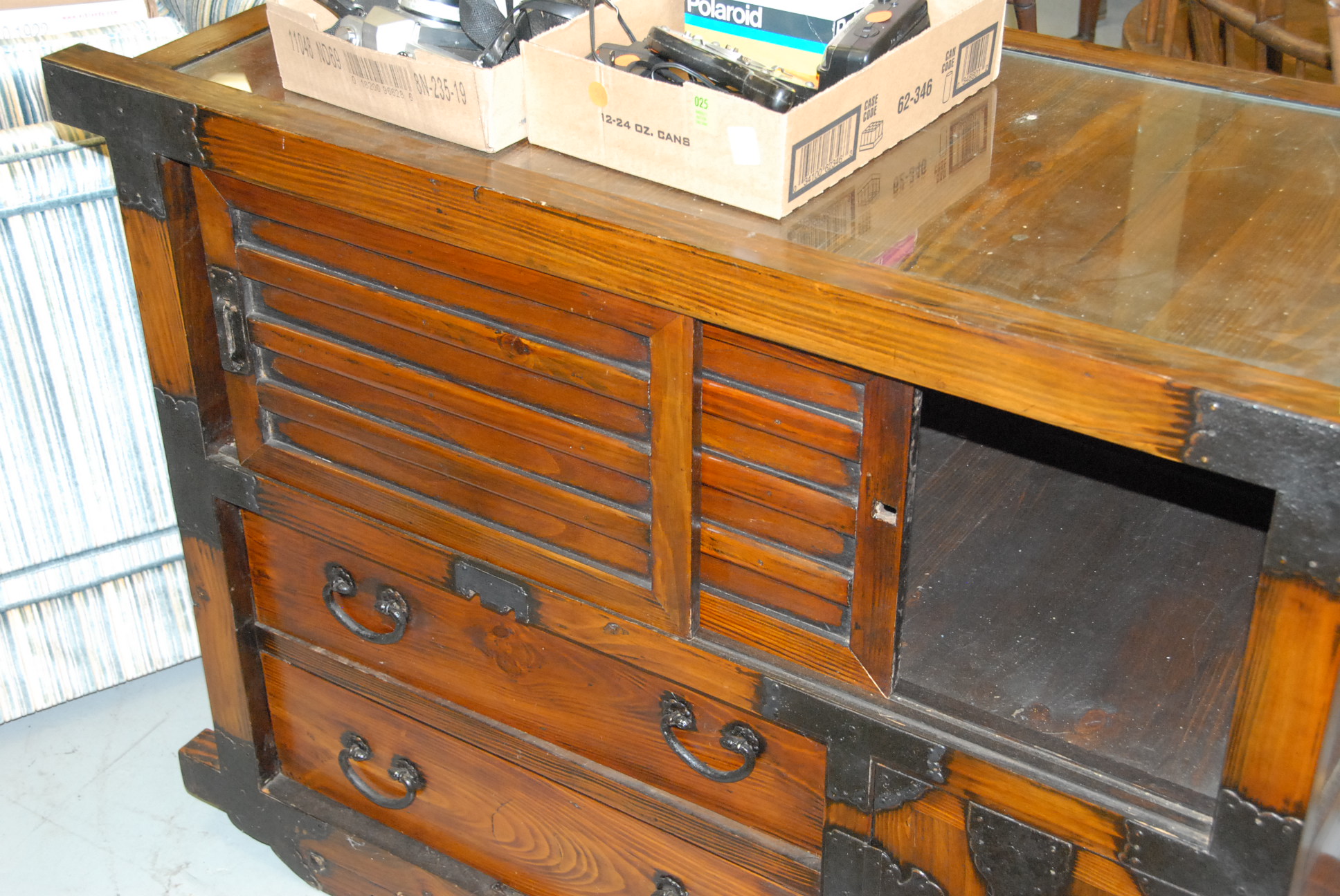 Oriental chest with sliding doors.