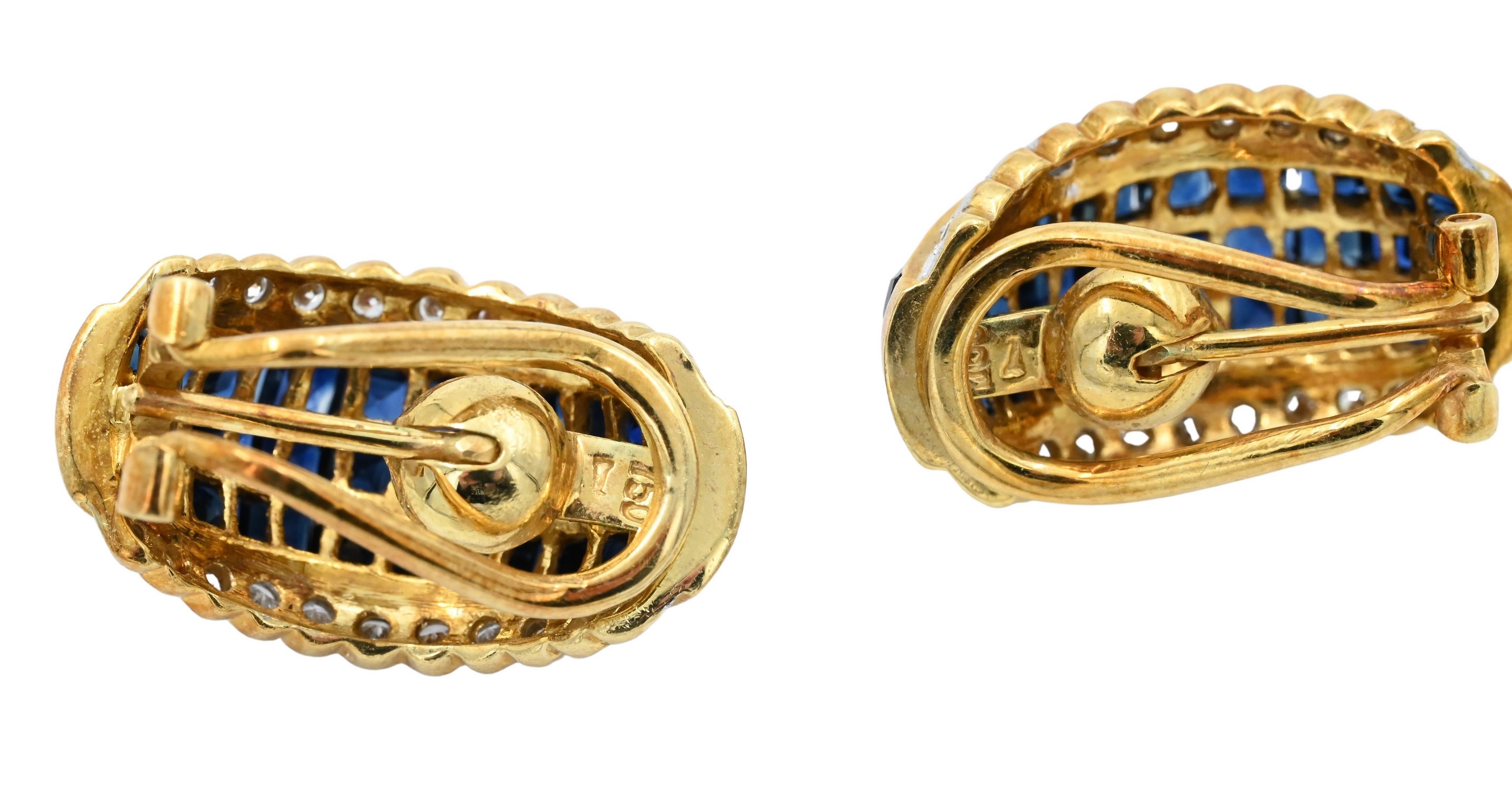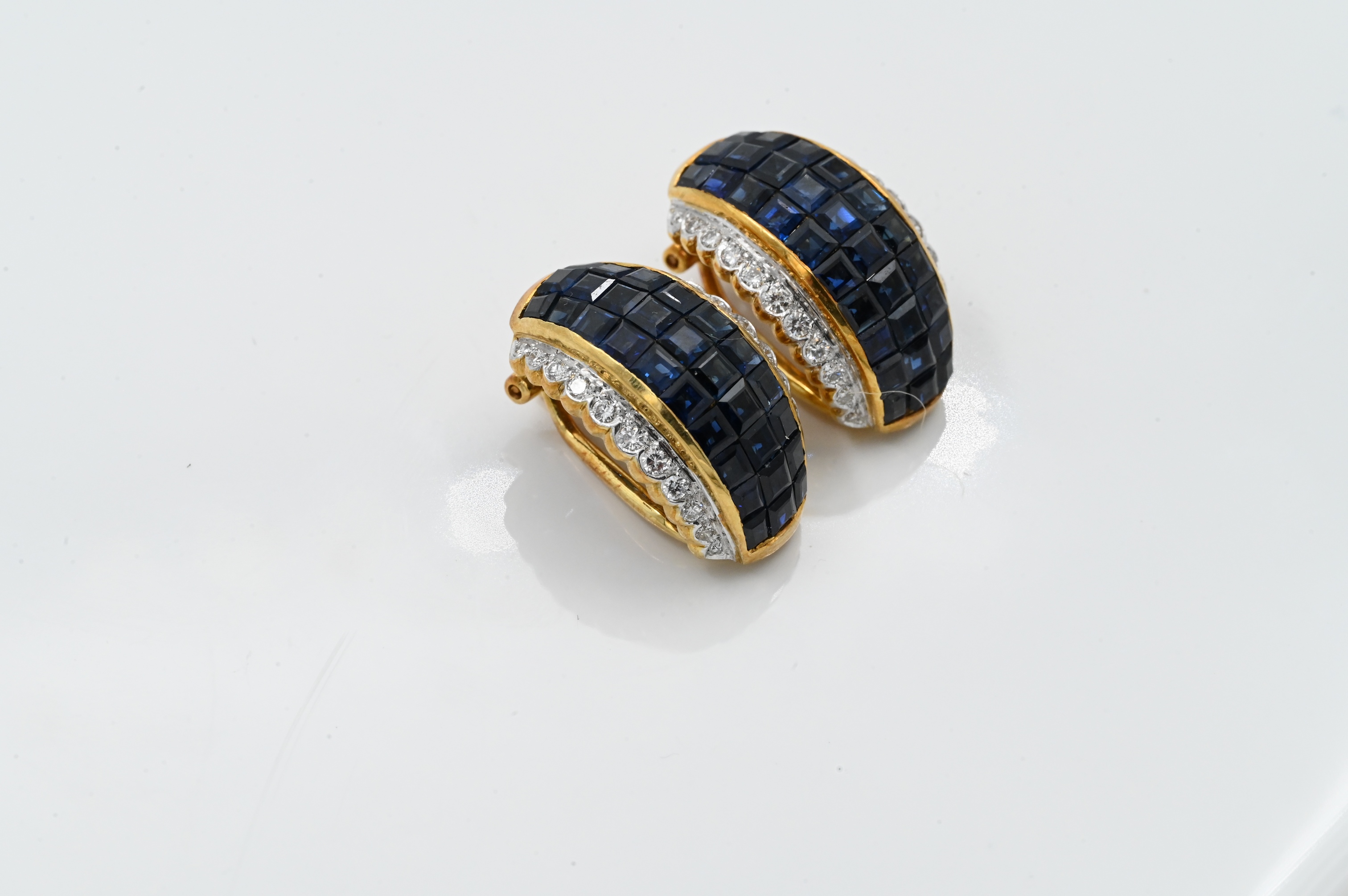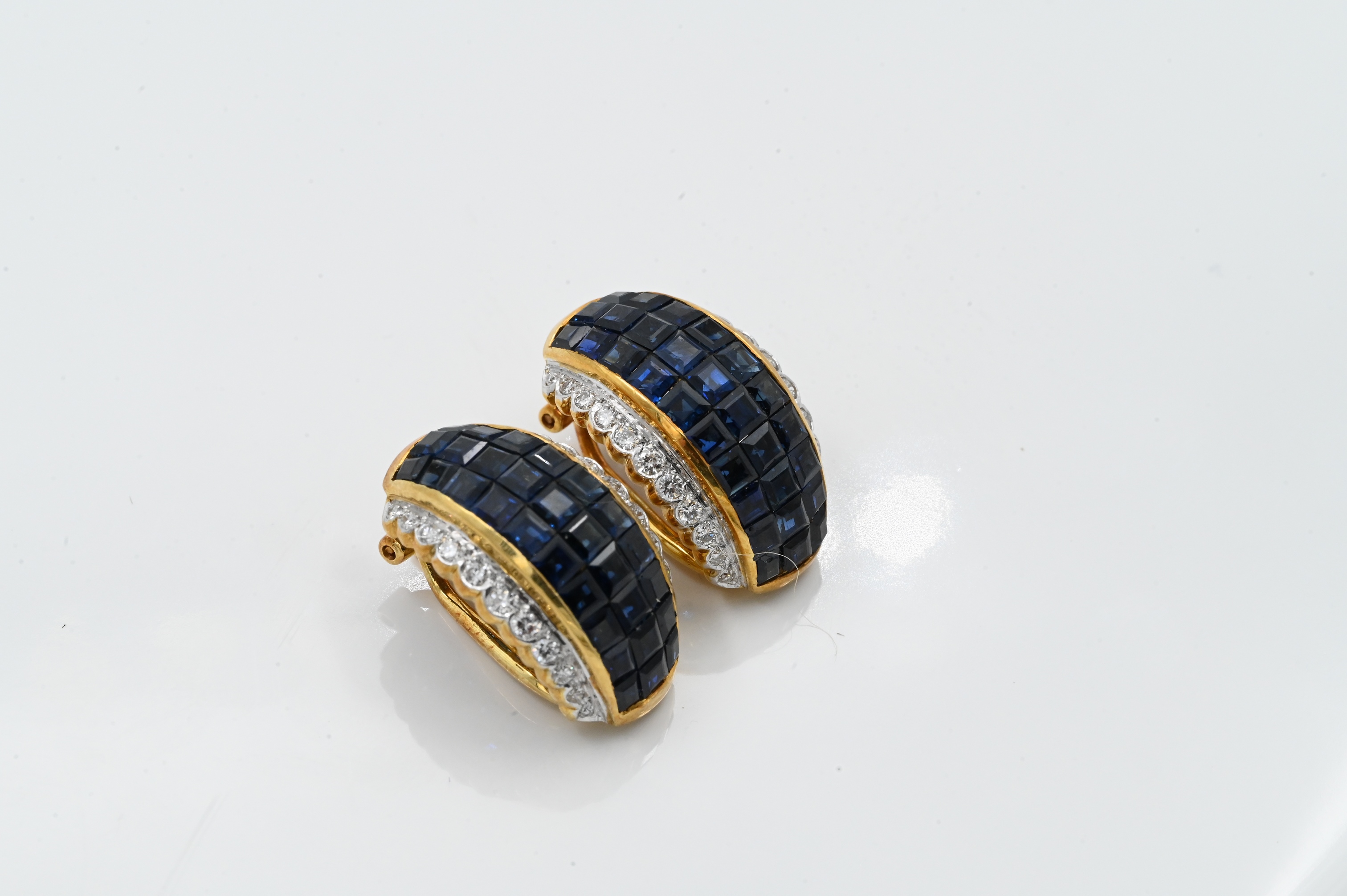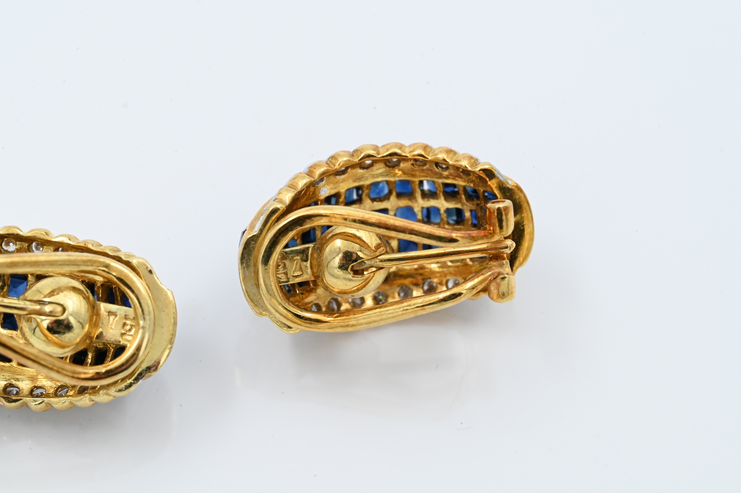 each set with 30 square cut blue sapphires flanked by round diamonds,