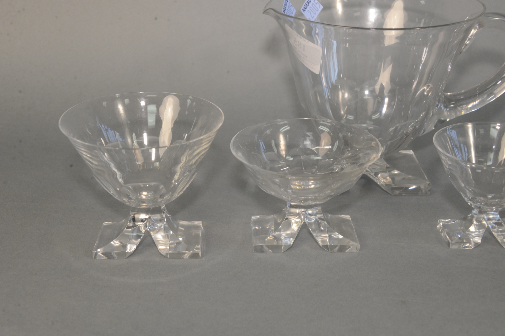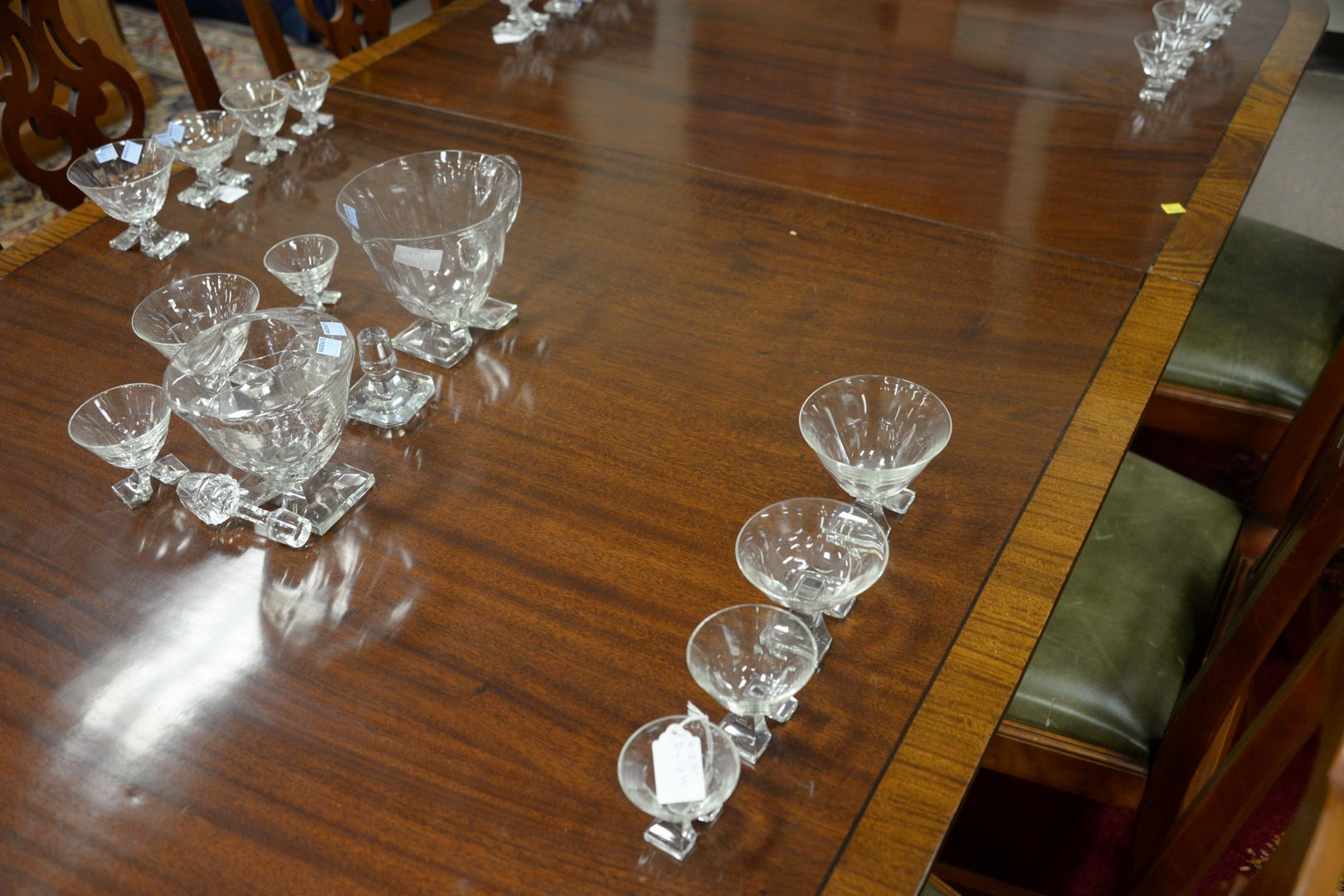 Lot 185: Set of 37 Crystal Stem Glasses to include a set of 10 red wine 6 white wine 11 champagne and 10 cordials along with a pitcher, po…