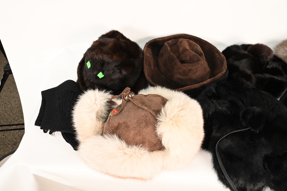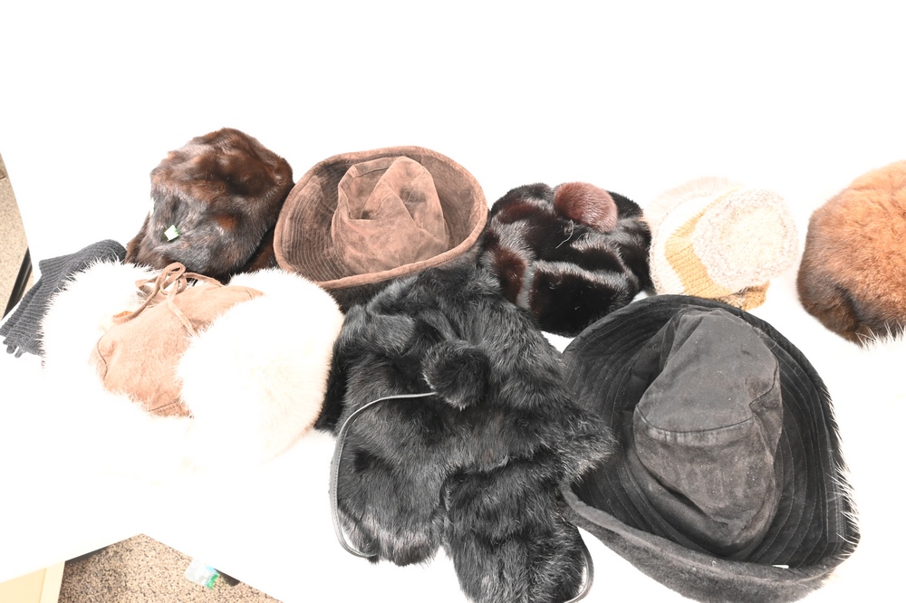 Lot 185: Ten Winter Ladies Hats, to include Searle Blatt, HPI, Adrienne Landan, in suede and furs, along with others, fur is supple, size S/M.