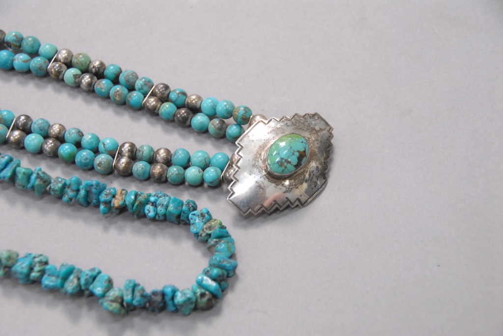 Two silver and turquoise necklaces.