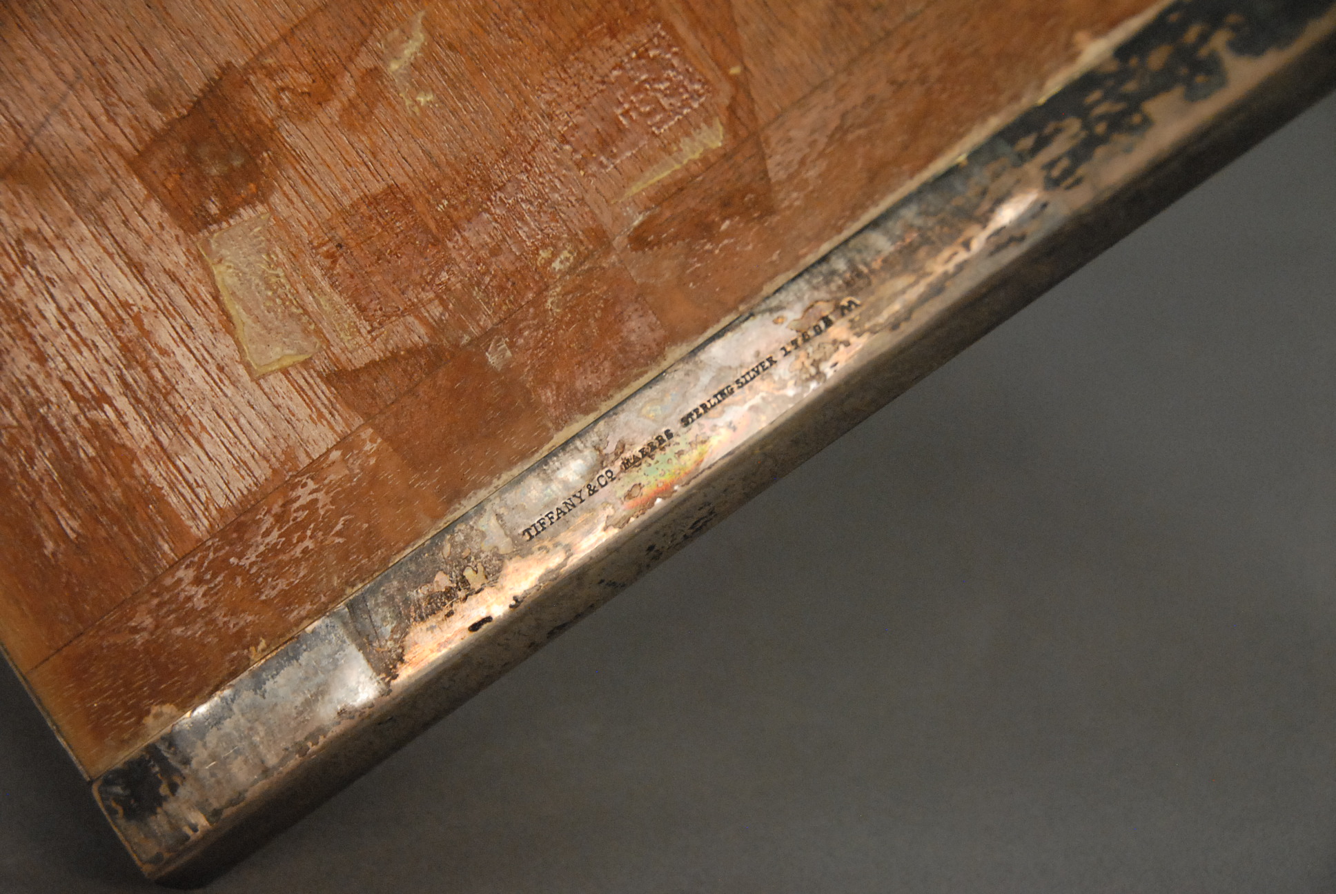 Lot 185: Two sterling picture frames, large one with wood back marked Tiffany & Co. Makers sterling silver 17695.